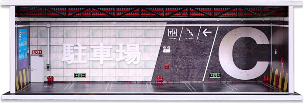 Malamfans 1/64 for Hot Wheels Japanese Style Parking Scene Display Box - 1/64 Scale Die-Cast Model Car Display Case with LED Lights and Acrylic Lid, Real 6 Parking Spaces