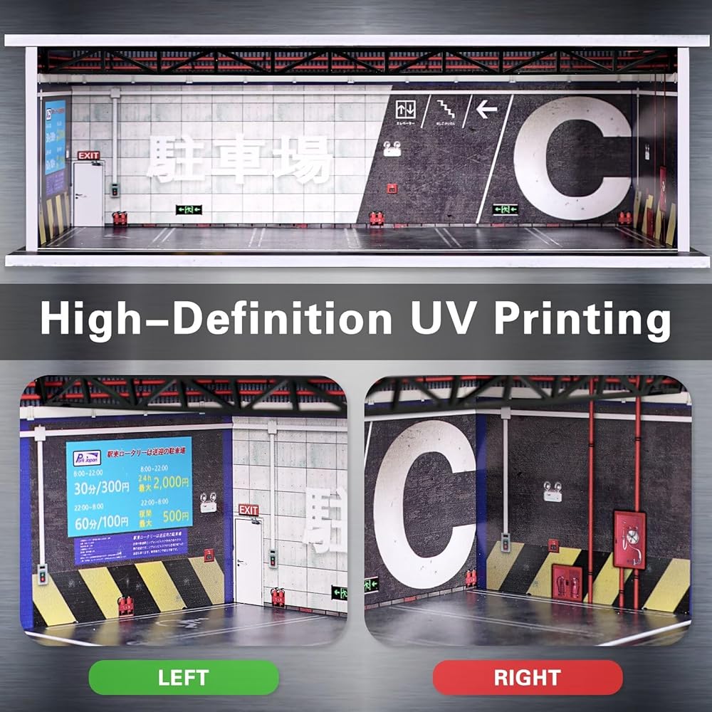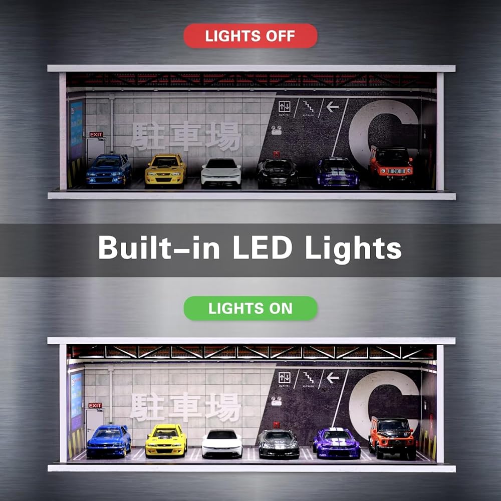 【Realistic Garage Scene】This hobby display box can be used to display your sports cars, collectibles toy car models in scale of 1:64. it can prevent your collectibles from getting dirty. With the special atmosphere scene, you can enjoy displaying valuable collectibles in your office or home.