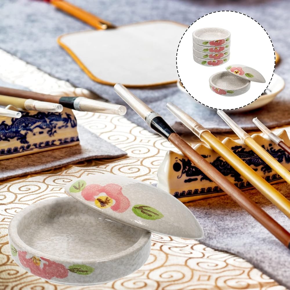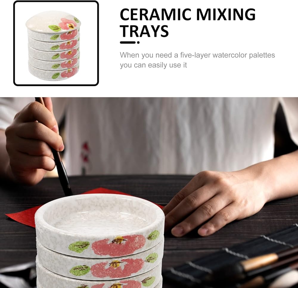 • Porcelain Ink Paint Dish 5 Layer Ceramic Stackable Paint Mixing Trays Round Watercolor Set for Artists Students Holding Painting Color