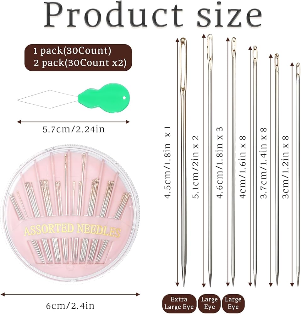 Product name: 60pcs2 boxes of multifunctional large-eye hand sewing needles, needle box and 2pcs threader