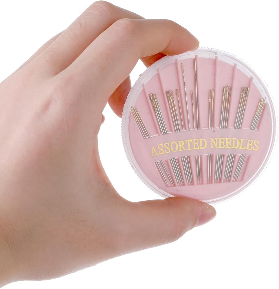 【Easy to Store】: 30pcs of large eye hand sewing needles are packaged in round plastic containers. The design of the container is reasonable so that the needle can be taken out by turning the dialing box of the container to align the triangle with the desired length and thickness of the needle