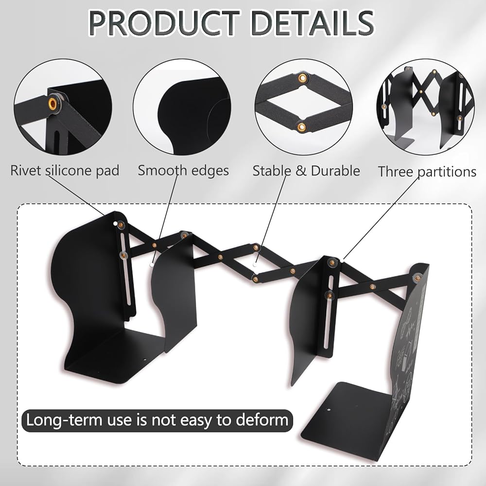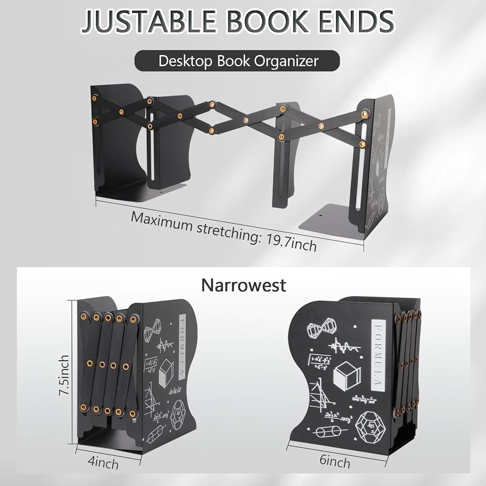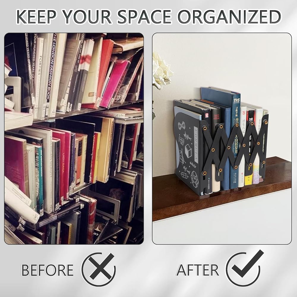 Large Adjustable Capacity: Expands from 3.9 to 19.6 inches to hold heavy books, magazines, and more; perfect for organizing bookshelves and desks, maximizing space with these sturdy book dividers