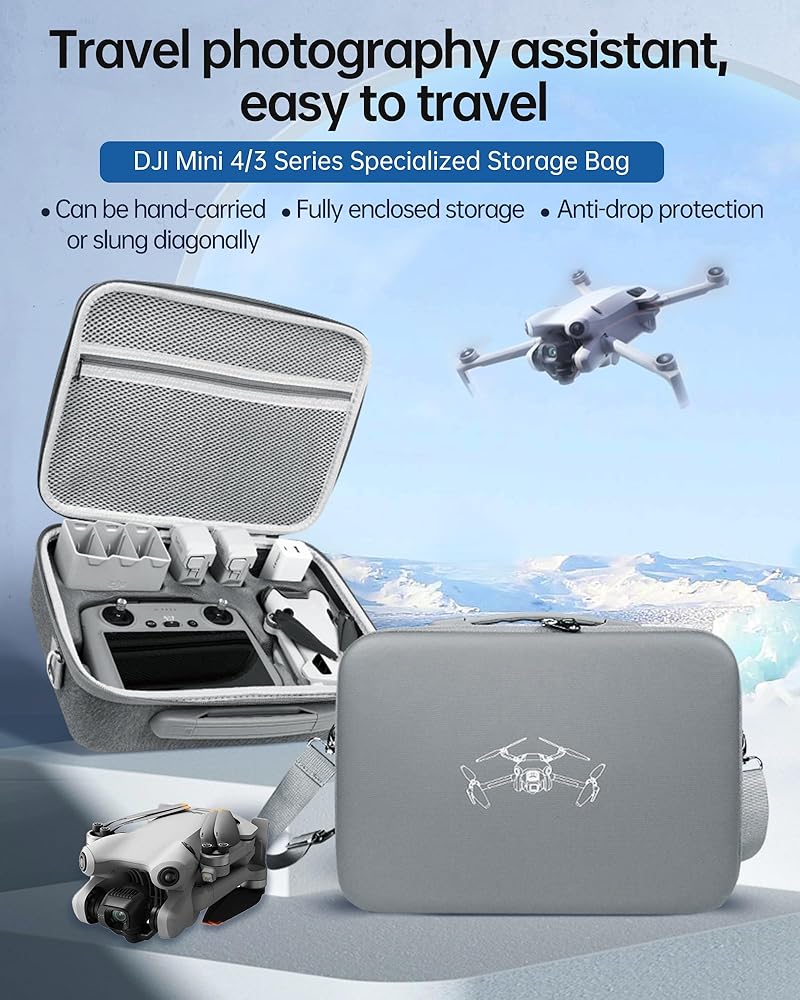 Helps you store Mini 4/3 series drones and accessories. Waterproof, anti-drop and wear-resistant. With internal mesh pockets so you can easily place your necessary products; With an adjustable shoulder strap for easy crossbody carrying, allowing you to free up your hands. The Mini 4/3 series storage bag is an essential companion for outdoor aerial photography expeditions.