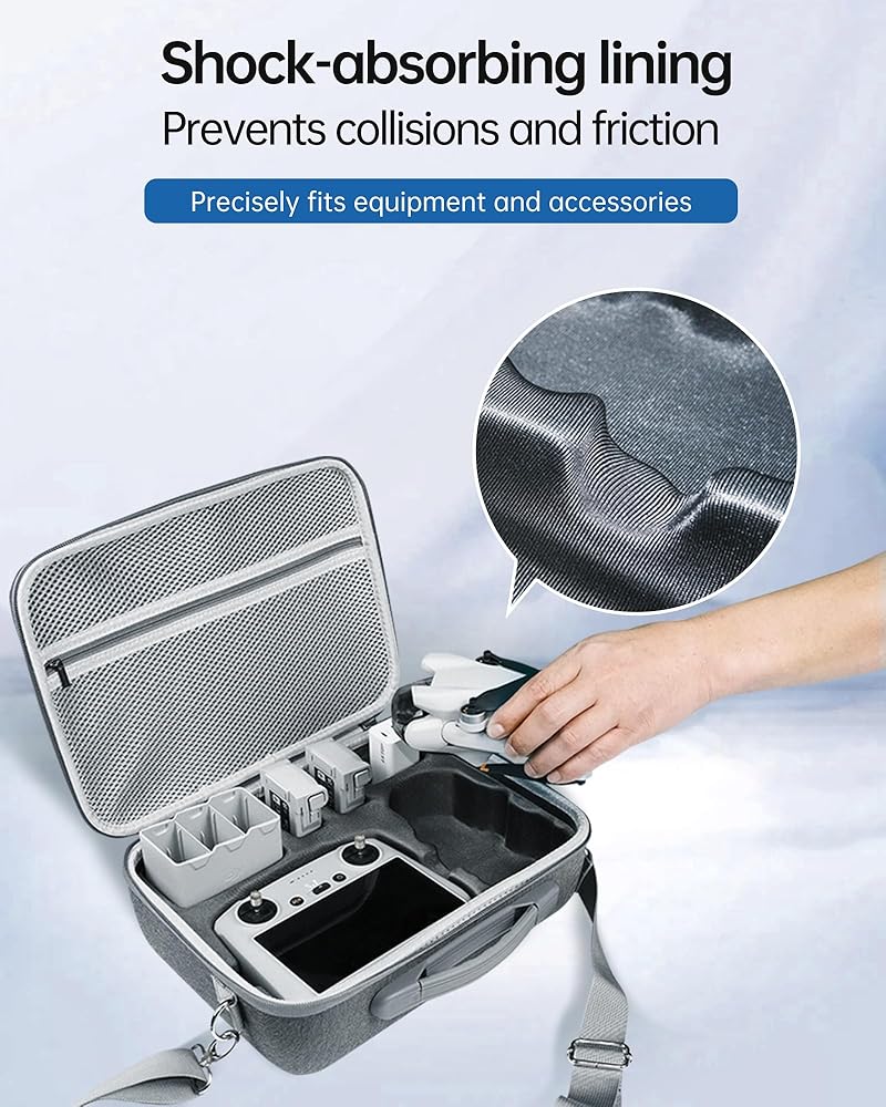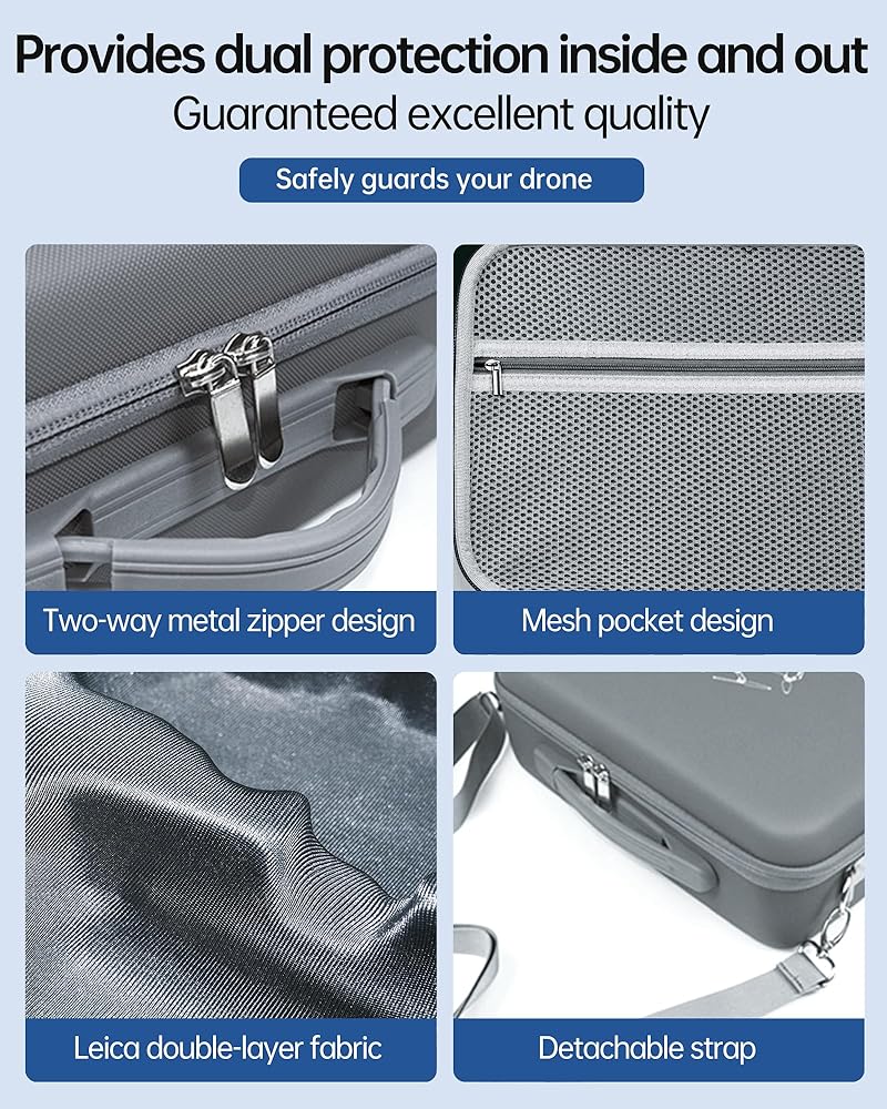 • 【Case Design】The Mini 4/3 Series Drone Carrying Case features a hard shell design providing waterproof, wear-resistant, and crush-proof protection. And it comes with a net pocket, which is convenient for storing small accessories.