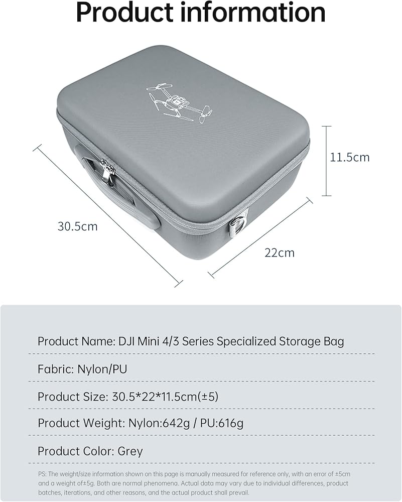 • 【Specification & Package】Size: 32*31*11.5cm(±5), Weight: 813g. You will get Carring Case for DJI Mini 4 Pro/Mini 3 Pro/Mini 3 × 1. Not include drone and other accessories! We offer a worry-free 1-year warranty and provide friendly customer service.