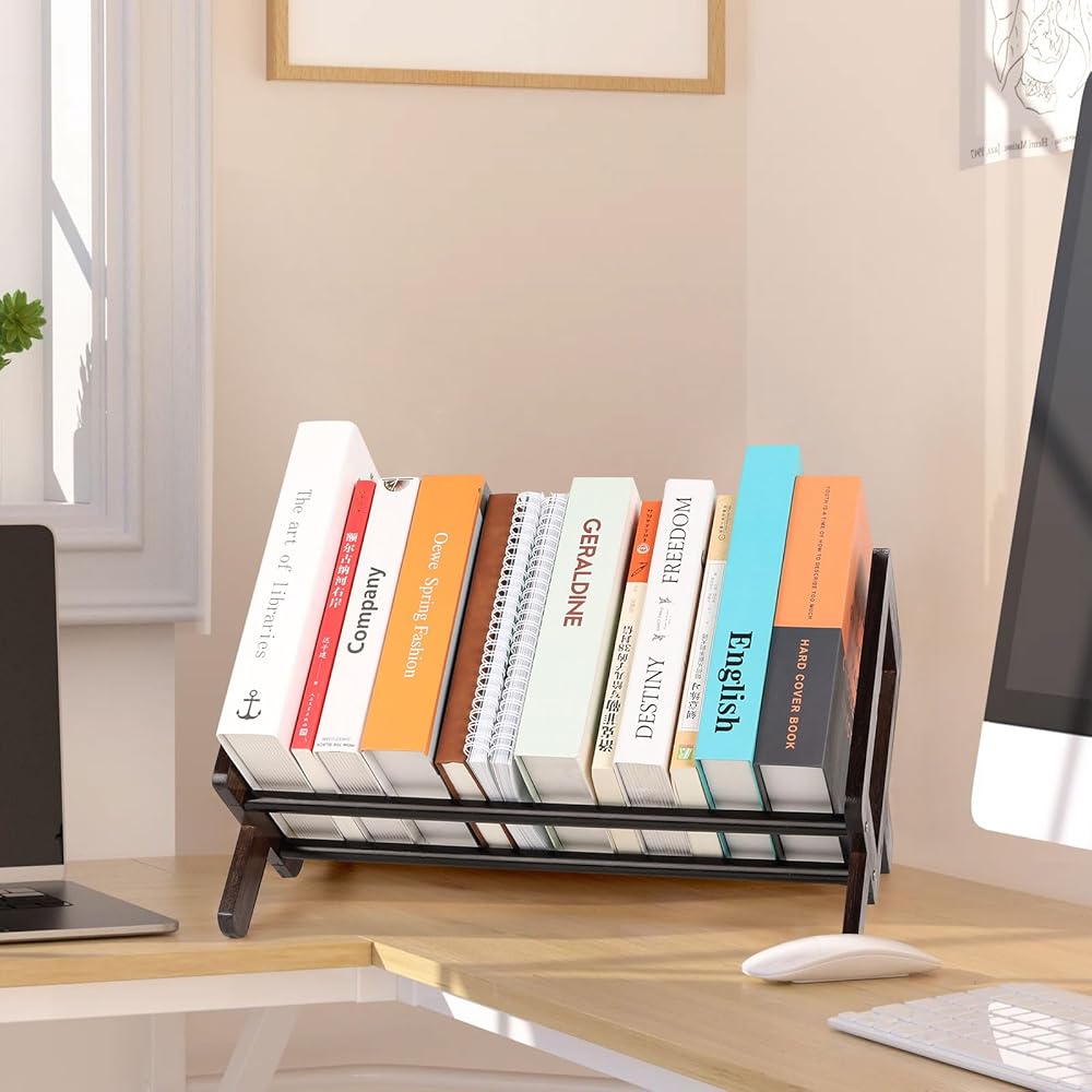 Tabletop bookshelf has a strong and sturdy structure that is not easy to deform, ensuring long-lasting durability and allowing you to store your heavy books and binders with ease.