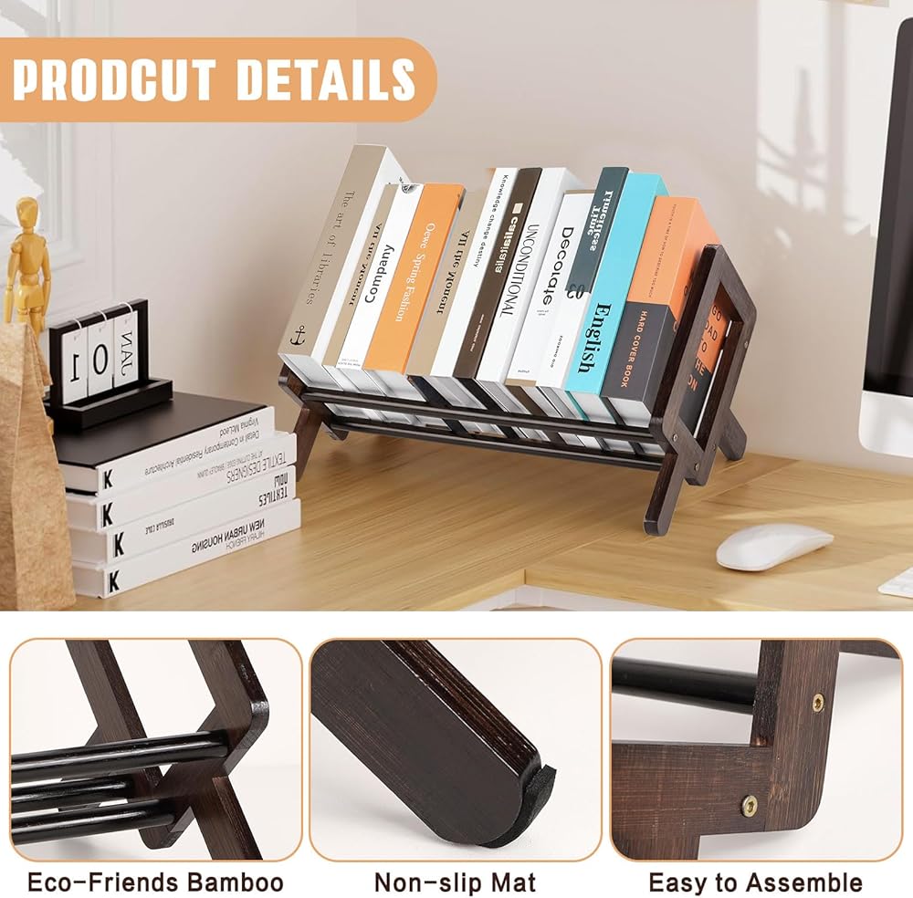 Add a touch of elegance to your desk with this beautiful desk bookshelf that's made of high-quality bamboo, water-resistant, easy to clean and comes in a coffee colored finish.