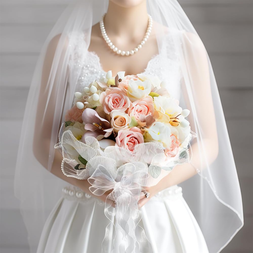 SNAIL GARDEN 2PCS Wedding Bouquet Holders,Bouquet Holder for Artificial Flowers for Celebrations, Anniversaries with 4.4 Yards White Pearl Edge Bouquet Packaging Paper and 2.2 Yards White Ribbon
