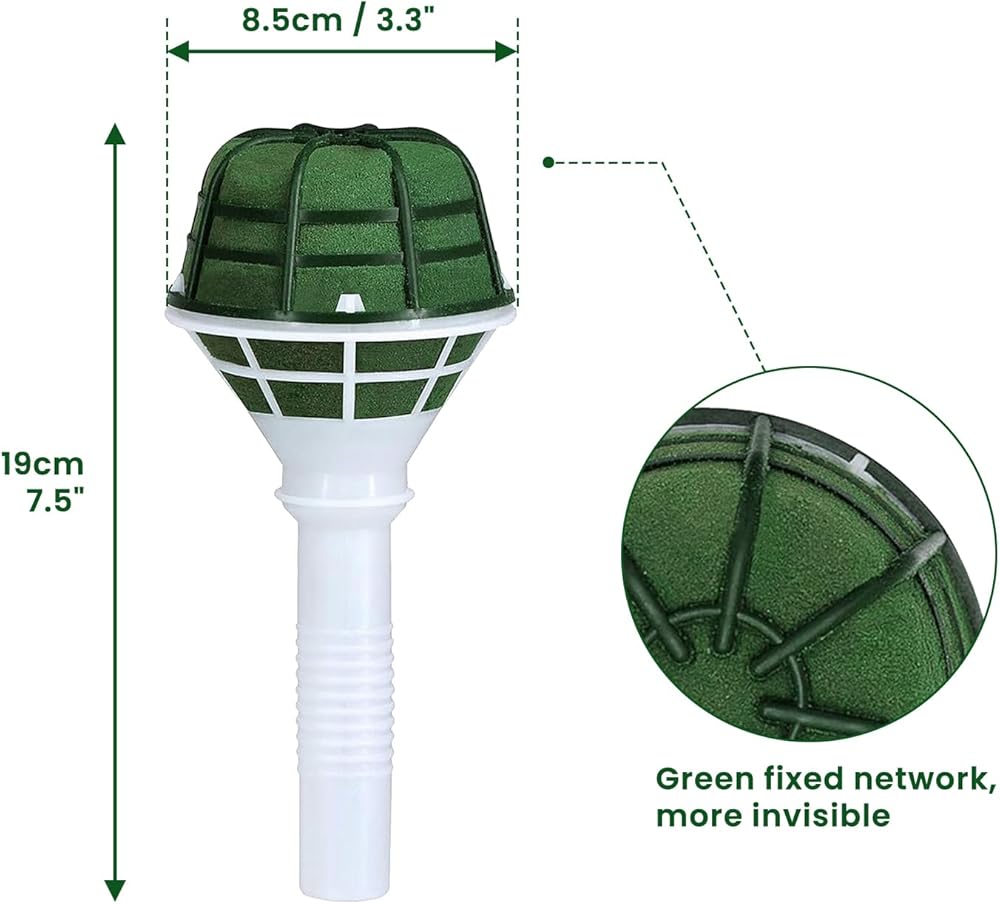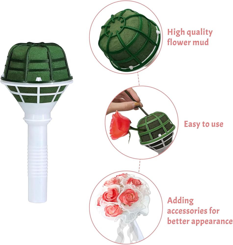 【Better Invisibility Color】The green color is much more invisible than the white.The upper part of flower handle holder cage is make green, which is integrated with the floral foam and has a good invisibility effect, ensuring the beauty of the wedding bouquet handle holder.