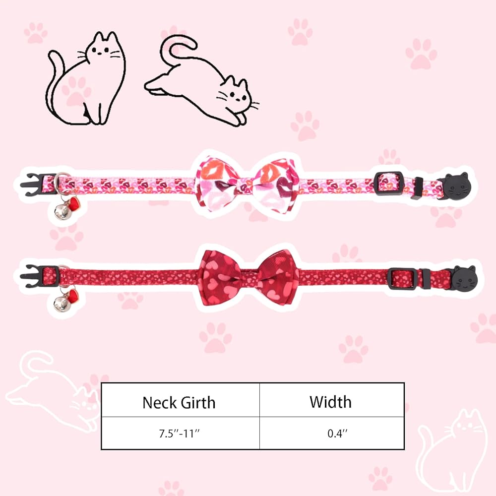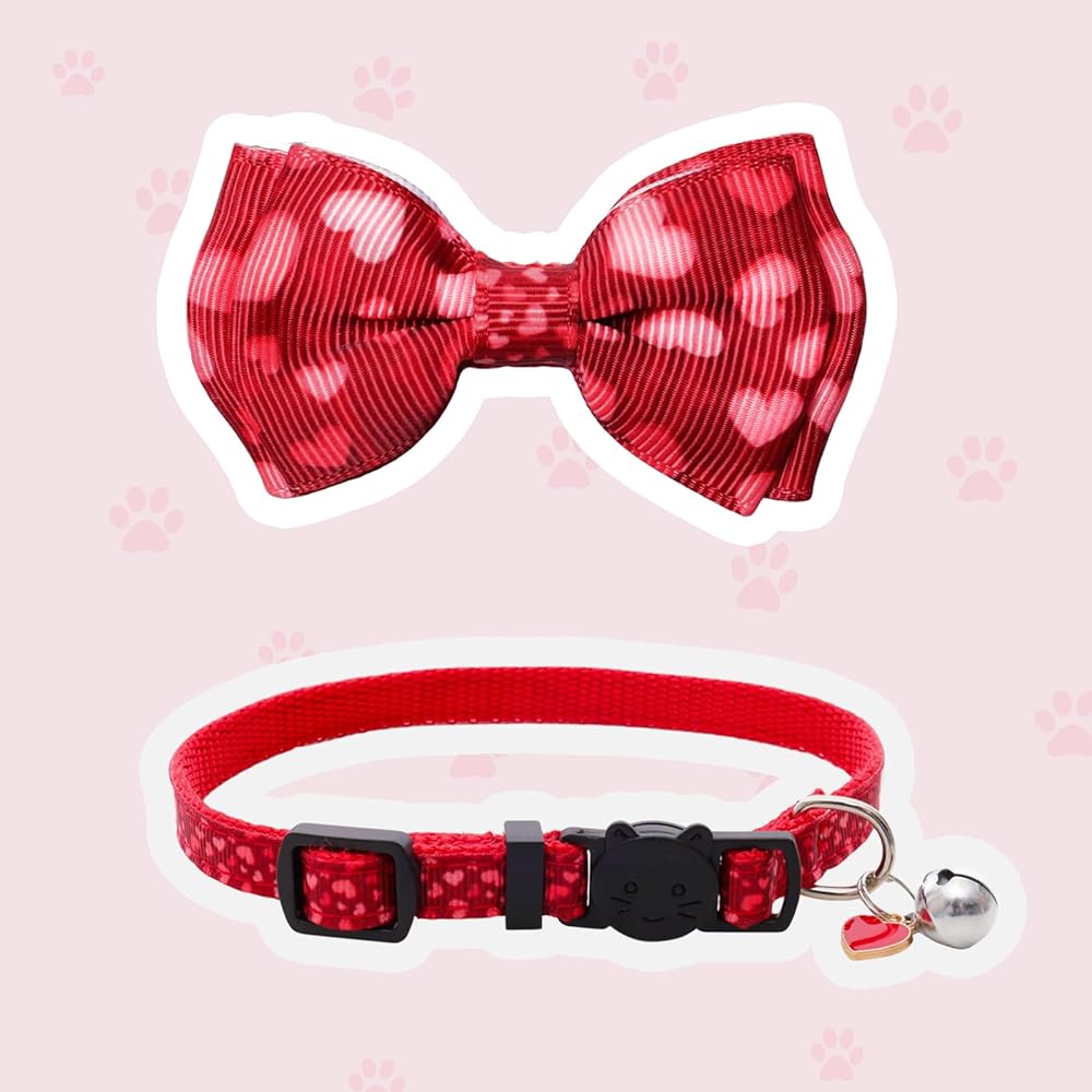 • Soft Quality Material:The love heart cat collars is made of soft fabric material,which is soft,lightweight fabric,comfortable to use.In addition to this,the classic love bow design will make your pet more full of festive atmosphere on Valentine's Day,and can better show your cat's fashion while being able to bring your cat a comfortable wearing experience.
