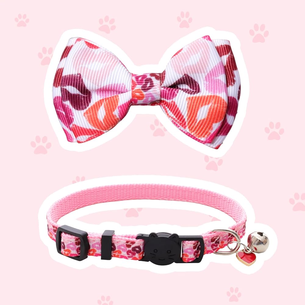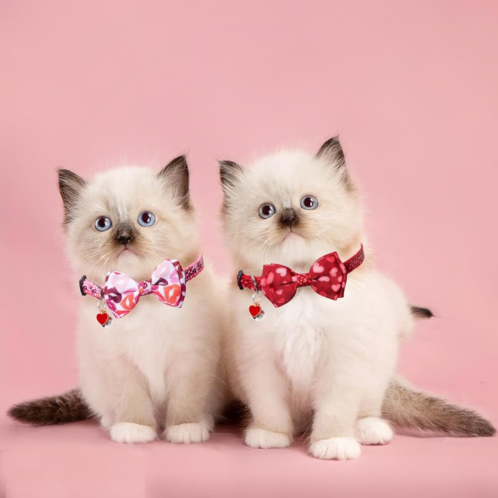 2pcs عيد الحب الياقات Cat Holiday Breakaway Heart Heart Kitty Kitten Ardten Prepray Cat Bowtie Protie Red Pink Heart Pottor