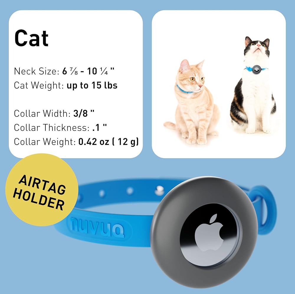 Airtag Breakaway Cat Collar - Soft, Comfortable, and Lightweight Safety Buckle Collar with Air Tag GPS Tracker Holder for Outdoor Cats and Sensitive Skin Kittens by Nuvuq (6 ⅞" to 10 ¼", Blue)