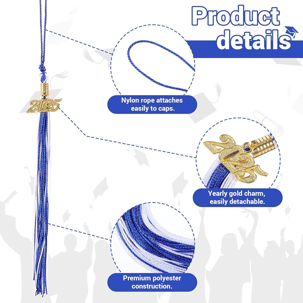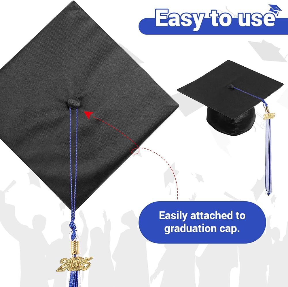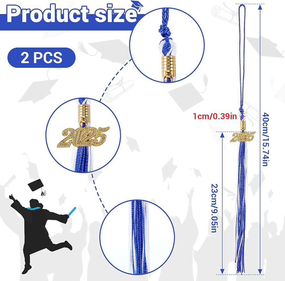 Package Includes: You will receive 2 piece graduation tassel with a gold 2025 year charm, the tassel length is 24cm/ 9.4inch, and total length is 40cm/15.7inch. An ideal choice for your graduation hat