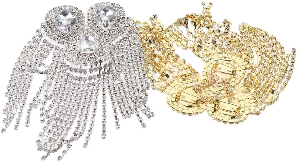 Packaging: Includes 2 pieces of crystal shoulder decoration, one of which is gold and one of which is silver