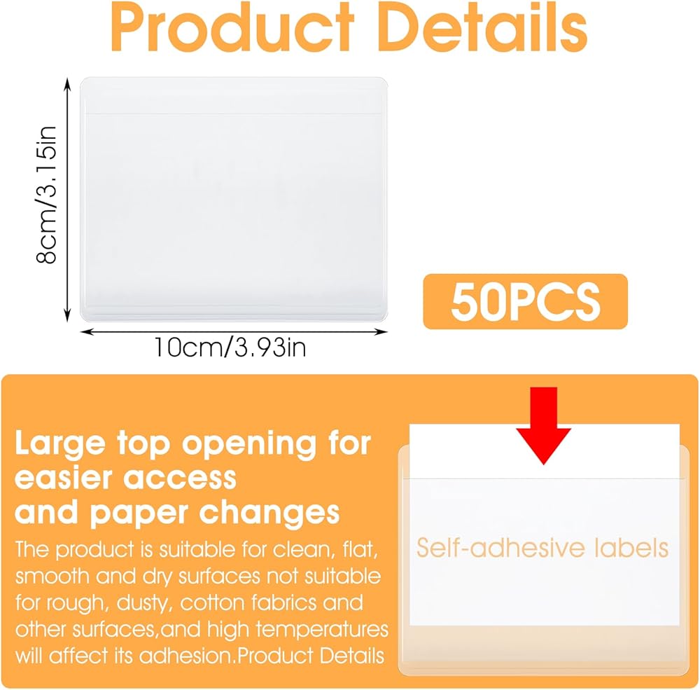 【Easy to Use】The clear adhesive pockets have a strong adhesive on the back and can be pasted anywhere, and then the corresponding label paper can be put into the bin labels to classify the items
