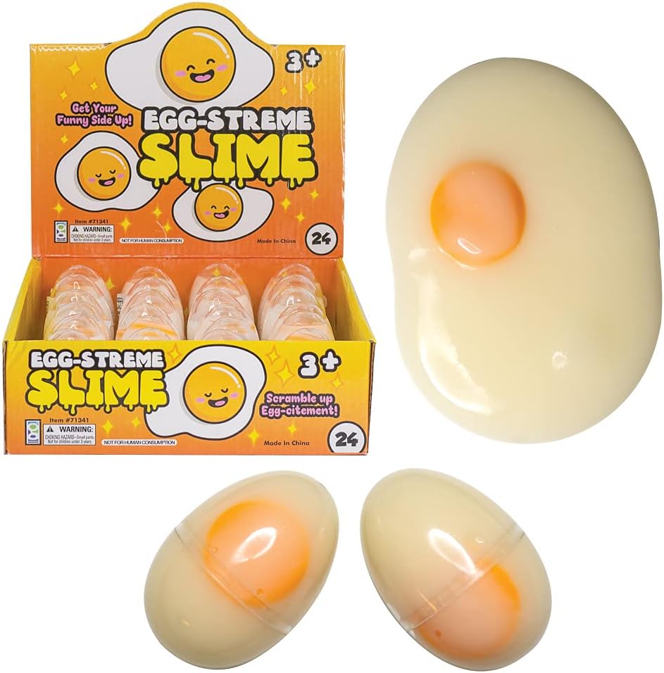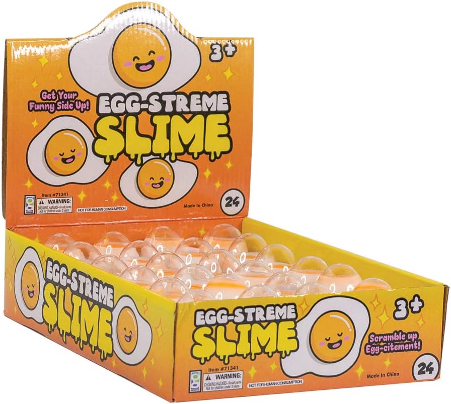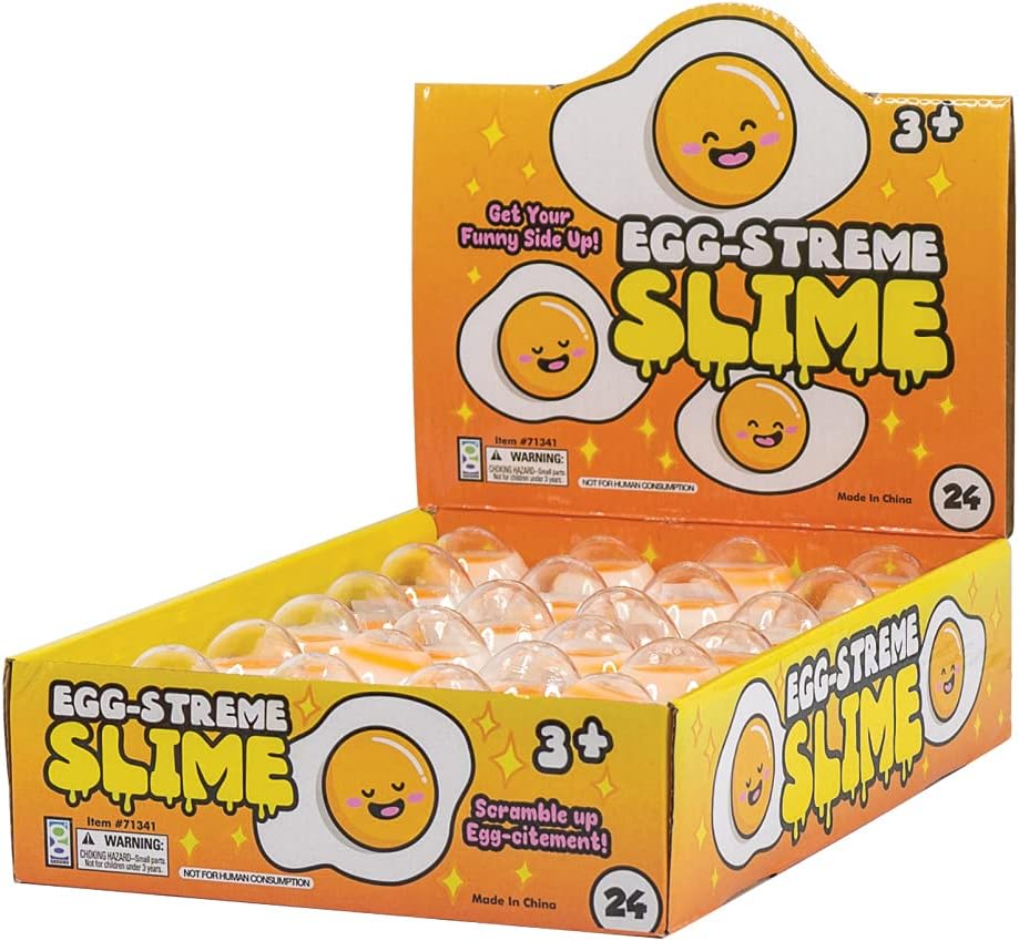 Set Includes: 24 egg slime containers great for a party bag, gag gifts, prizes for students, and more