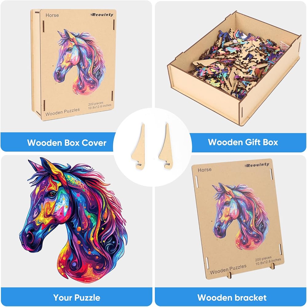 Horse Head Wooden Puzzle for Adults, Horse Wooden Jigsaw Puzzles(10.8 * 12.6in-200pcs), Unique Shape Animal Adult Puzzles,Irregular Wood Puzzles Best Gift for Adults and Kids Family Game
