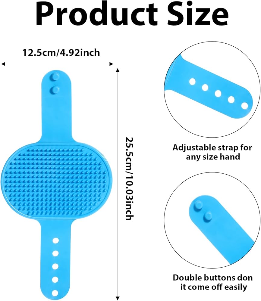 【Easy to Use】 The dog bath brush scrubber has an adjustable ring handle, which can be adjusted in size according to the size of the palm for easy use
