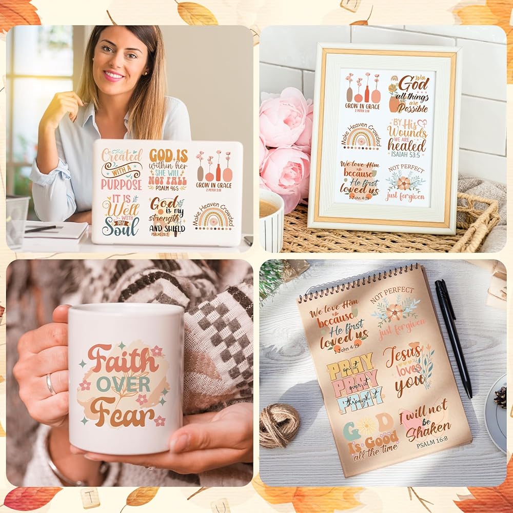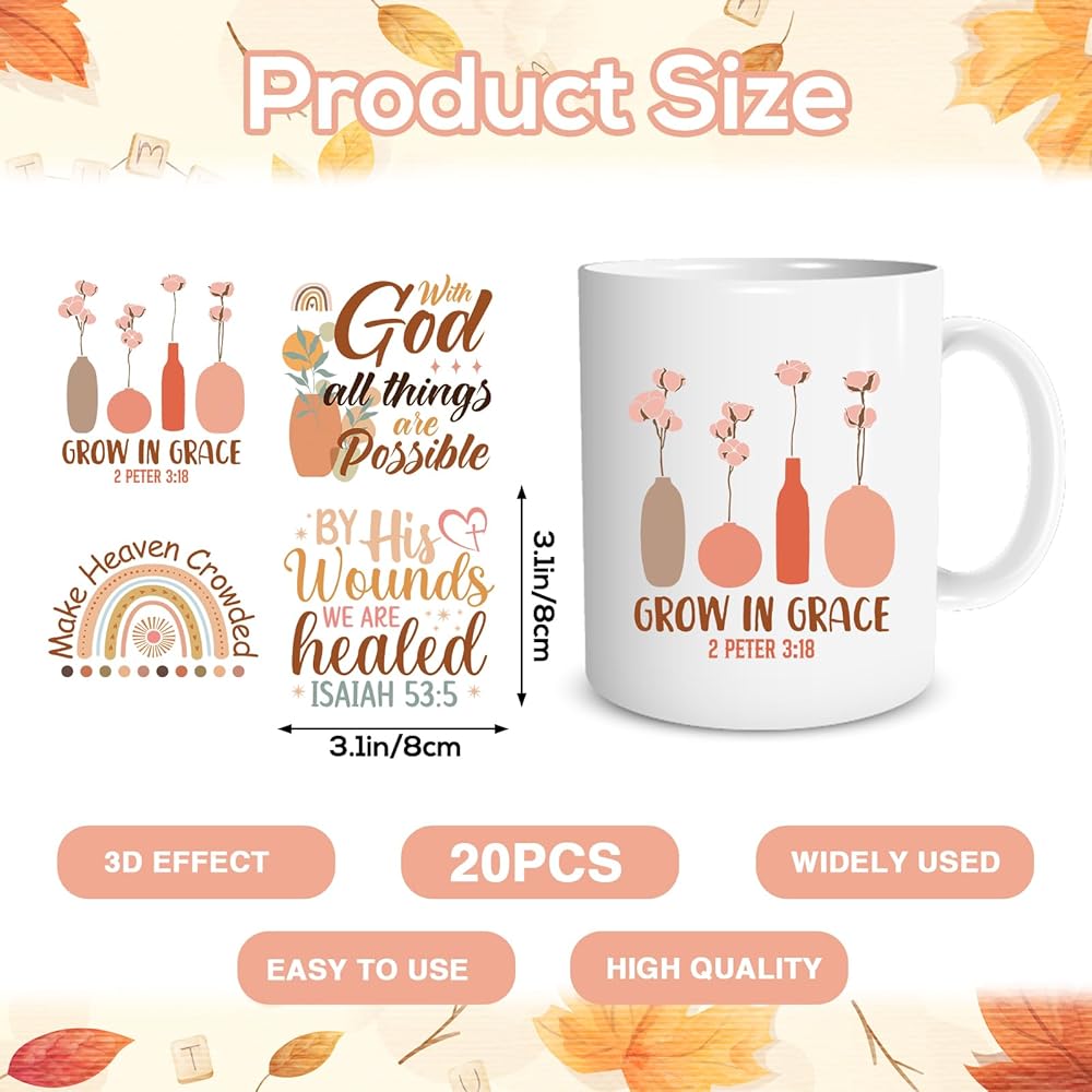 Christian UV DTF Cup Wrap - 20 Sheets Bible Verse UV DTF Cup Wraps for 16 OZ Glass Cups Boho Affirmative UV DTF Decals Waterproof Inspirational Transfer Stickers for Tumbler Religious Gifts