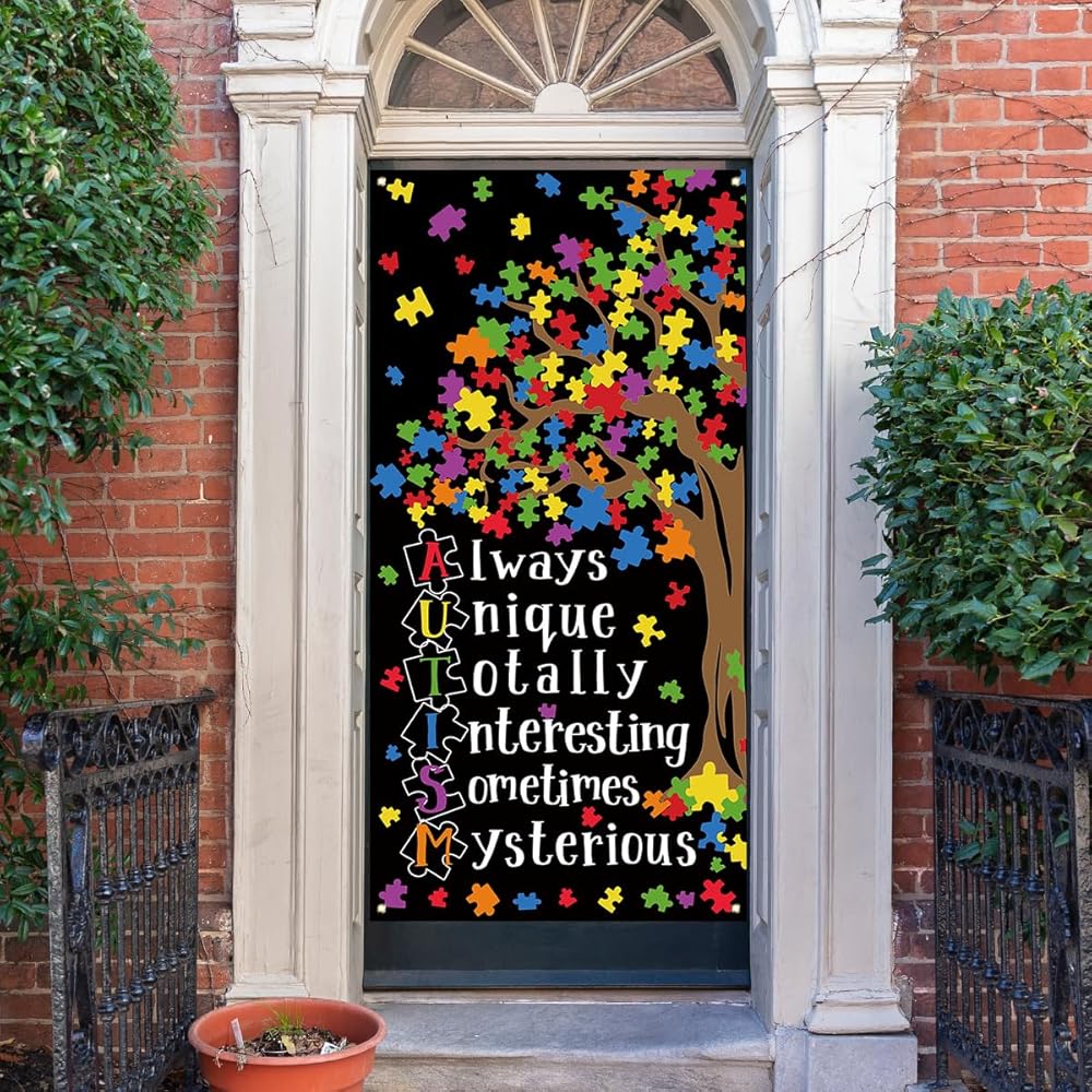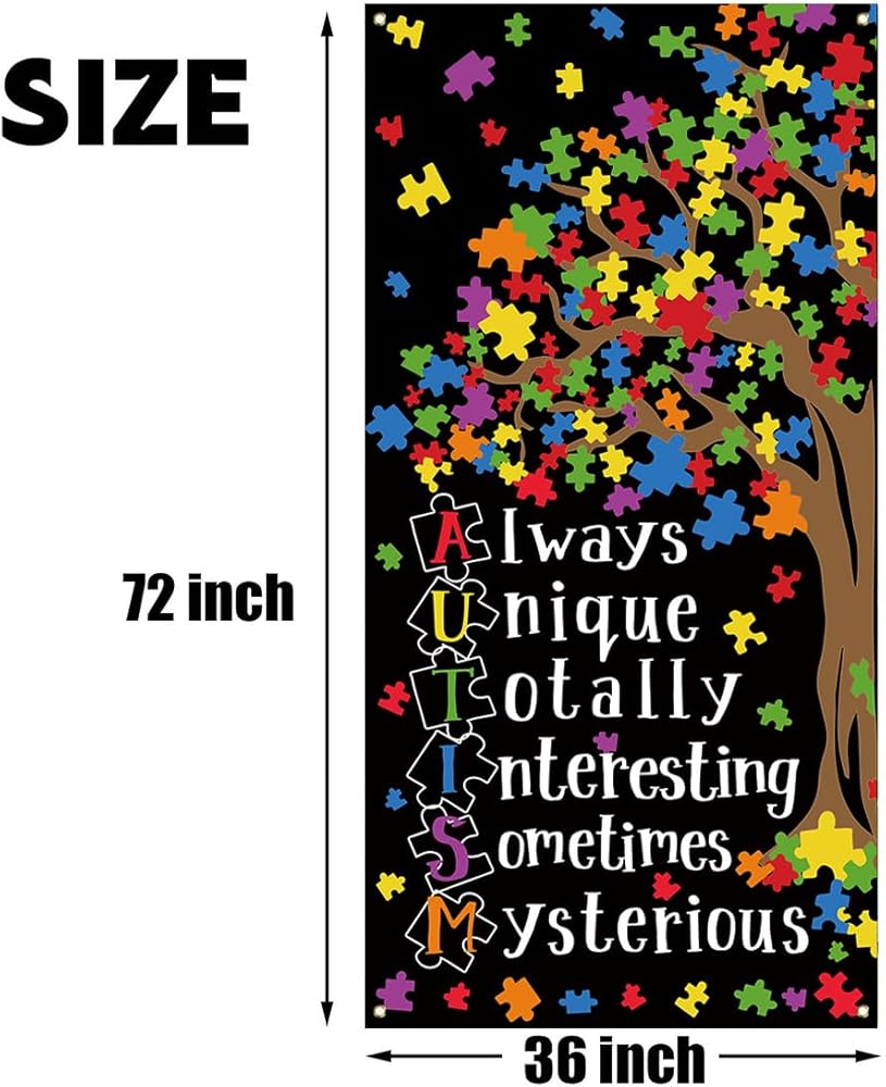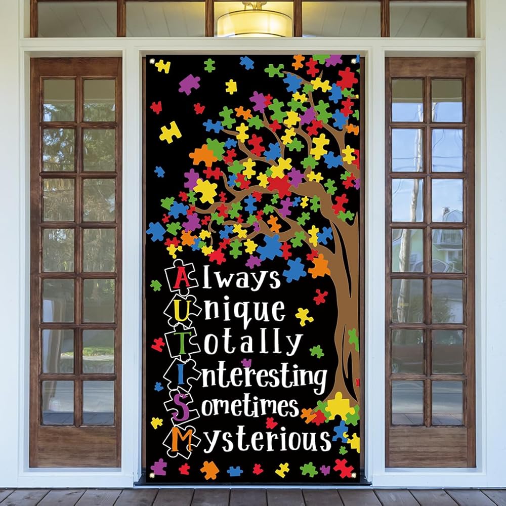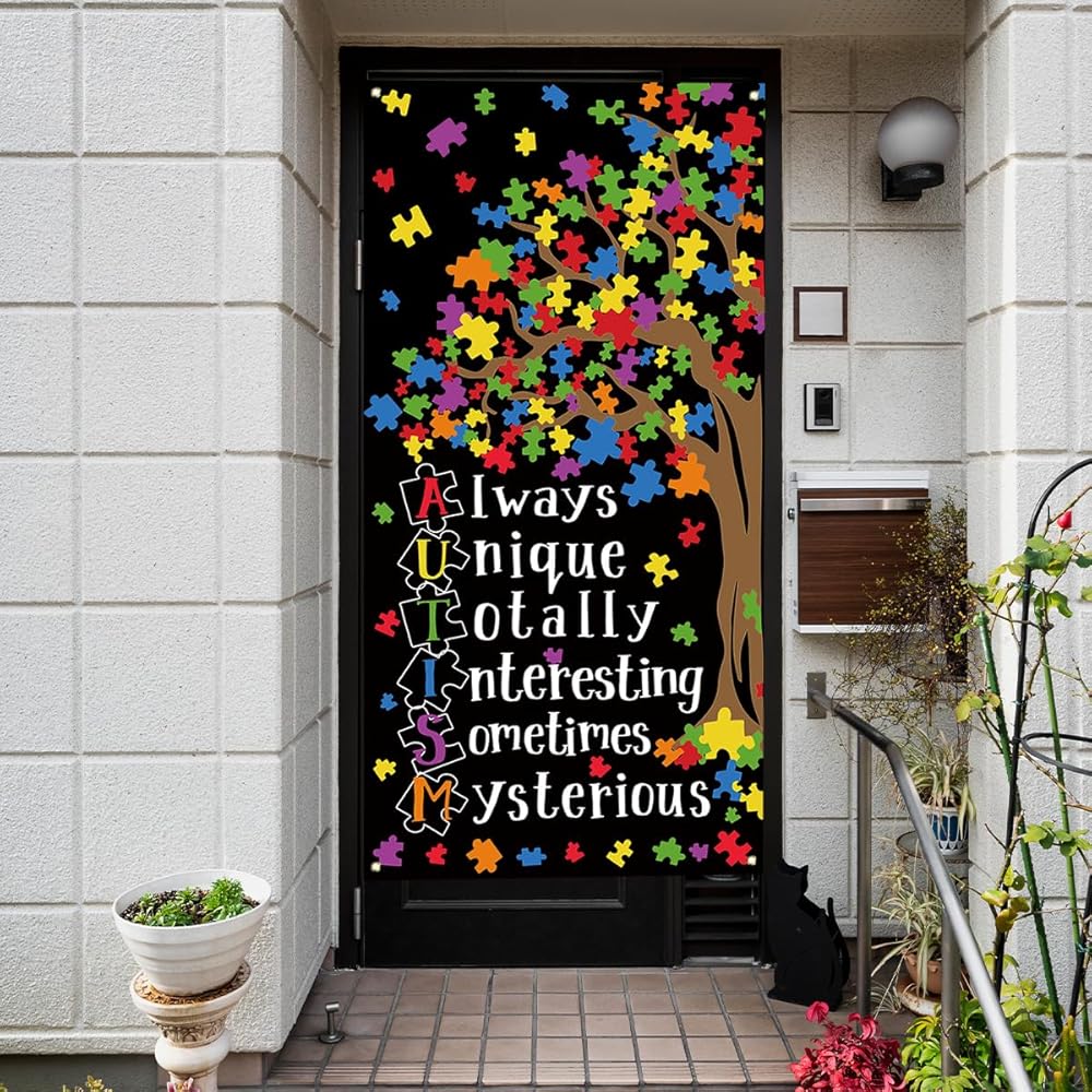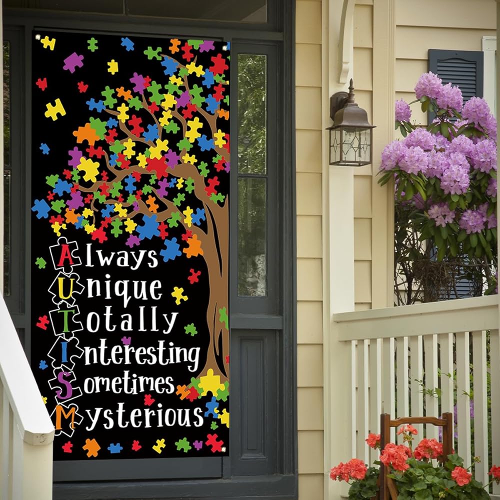 Autism Awareness Decorations Puzzle Piece Heart Love Needs No Words Door Cover Autism Awareness Banner Autism Awareness Decorations and Supplies for Home Party