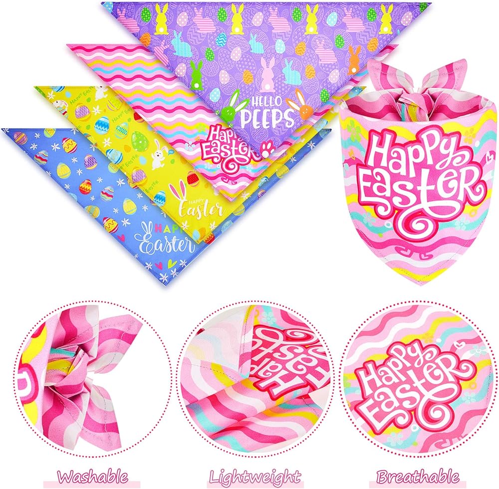• 8 Styles: the package contains 8 pieces different Easter dog bandanas with adorable Easter patterns and bright colors, enough quantity and styles to decorate your pets for the coming holiday