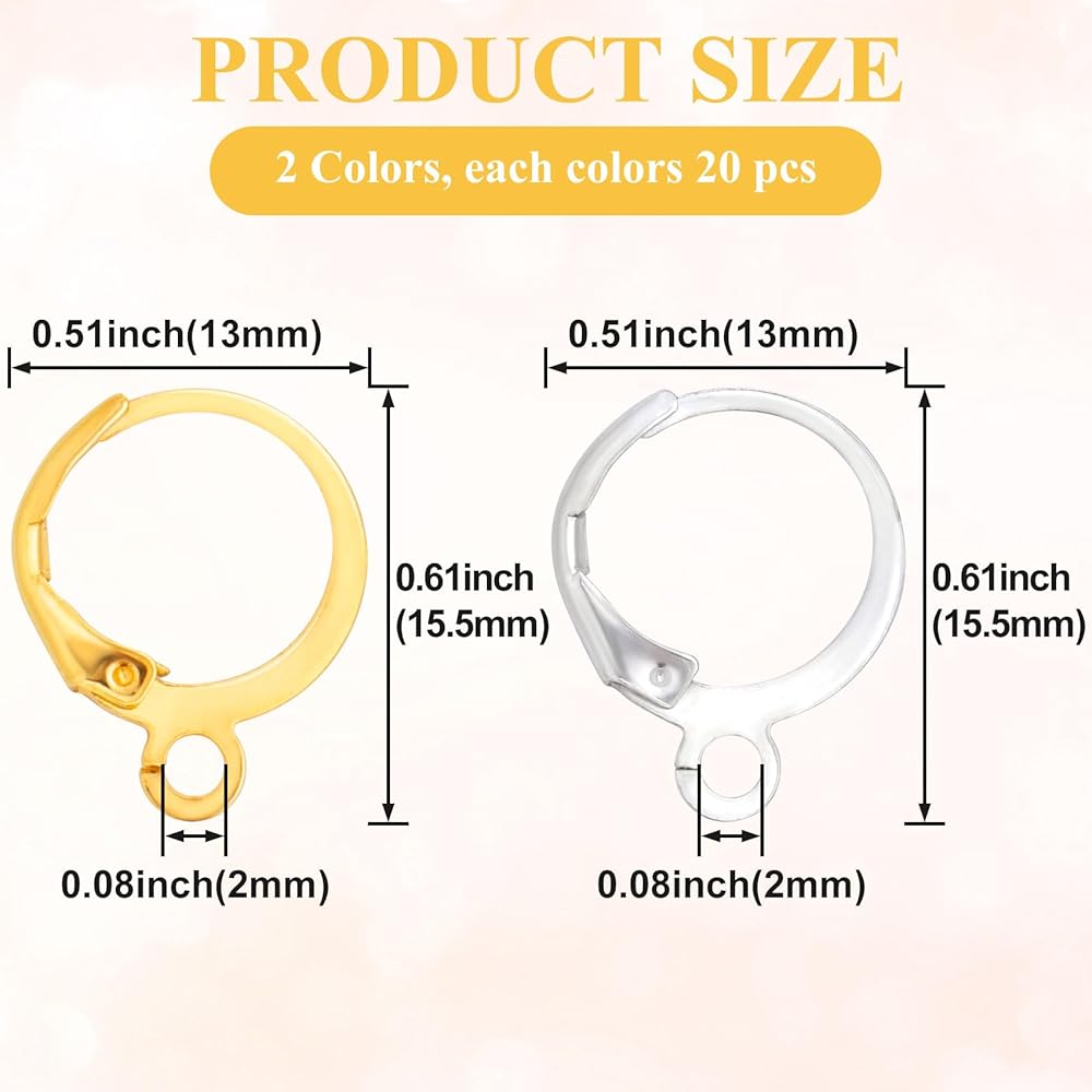 Package Included: You will get 40 pcs leverback earring hooks in gold and silver, 20 pcs each, enough quantity for your daily jewelry making and replacement, classic gold and silver colors give you more choices