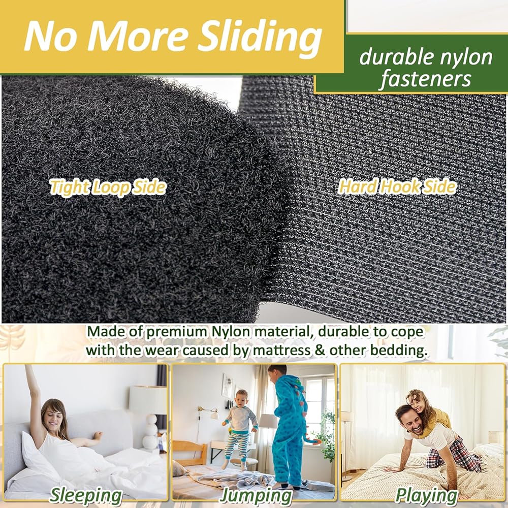 • شريط نايلون قوي: تتميز وسادات المراتب غير هذه بمواد نايلون مميزة ، وهي متينة بما يكفي للتعامل مع التآكل الناجم عن السجاد والتطبيقات اليومية الأخرى. سواء كان النوم أو الكذب أو اللعب على السرير ، فإن الشريط الخطاف والحلق يحافظ على ورقة الفراش/السرير في مكانه دون القلق بشأن الانزلاق.