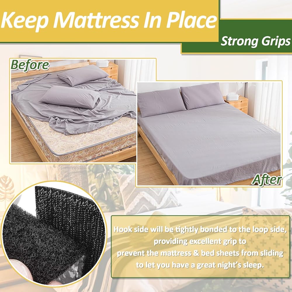 • لا مزيد من المرتبة المنزلق: جانب الخطاف الصلب مرتبط بقوة بجانب الحلقة الضيقة ، مما يوفر قبضة ممتازة لإبقاء المرتبة في مكانها. علاوة على ذلك ، يمكن ربط الدعم اللاصق بإحكام بإطارات الأسرة المختلفة والمراتب ذات الأسطح الملساء. يساعد في منع المرتبة من الانزلاق.