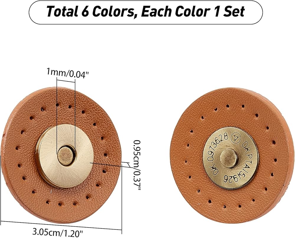 الحجم الصحيح: Clasps Pu Leather Button Clasps مجموعة متنوعة تحتوي على 6 ألوان 30 مم ، مجموعة واحدة/لون. قطرها 30 مم/1.1 بوصة ، بسمك 9.5 مم/0.7 بوصة ، ثقب: 1 مم/0.03 بوصة ، والتي يمكن أن تلبي مطالبك المختلفة.