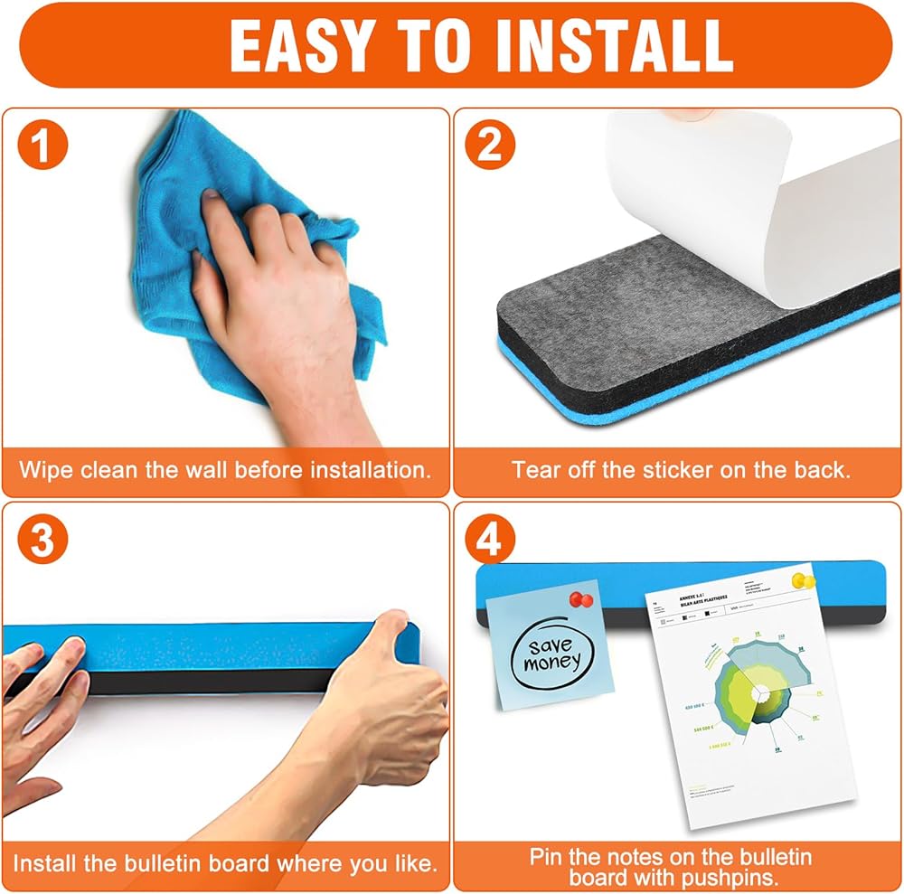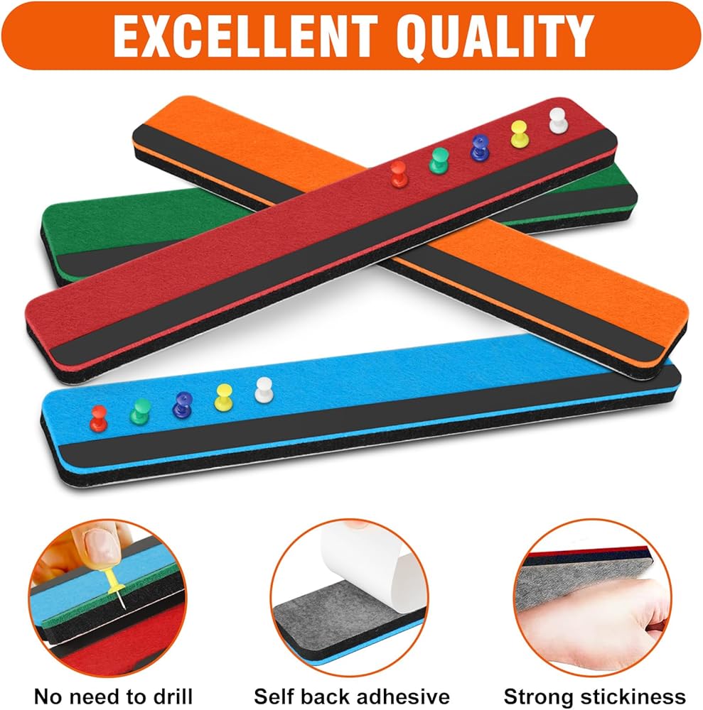 سهلة الاستخدام: شرائط شريط لوحة الدبوس المحسوس هذه ملصقات ذاتية وذات سهلة الاستخدام. ما عليك سوى تقشير ورقة الحماية الخلفية للوحة النشرة ، ثم ضع اللوحة المحسوسة على الحائط