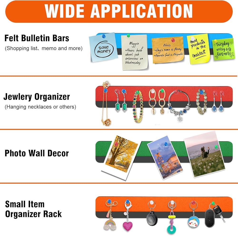 التطبيق على نطاق واسع: يمكن أن تستخدم شرائط شريط لوحة الدبوس المحسوسة لصق الملاحظات والصور والجداول والإعلانات والمفاتيح والأقراط. من السهل تركيبه على الجدار ، الباب ، خزانة ، ثلاجة ، خزانة الكتب ، المرآة ، إلخ