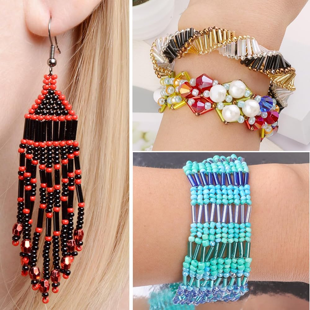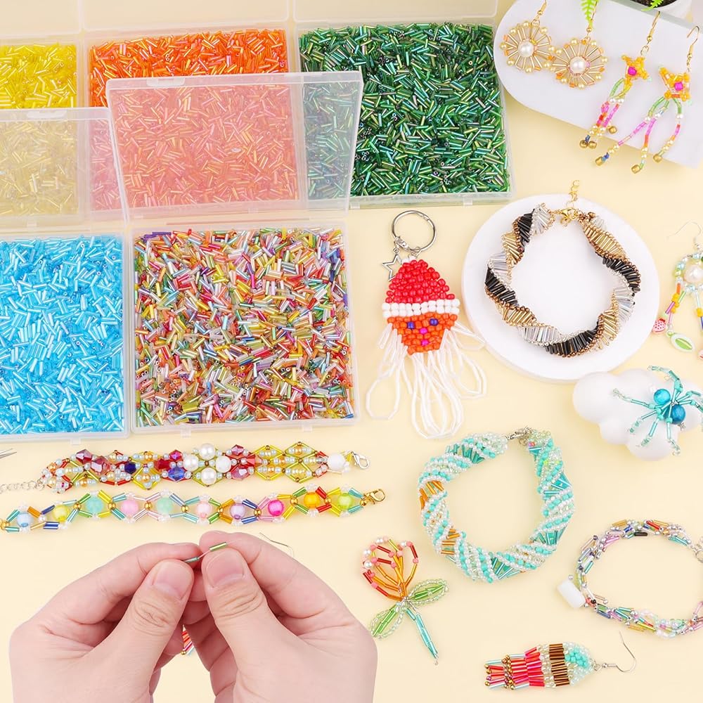 High-Quality Tube Beads: bugle beads for jewelry making are well made: durable & sturdy,smooth surface, shiny luster, waterproof & no fading, not easy to break. All embroidery beads have complete holes, string can go thru easily. The shape and size of brightly colored beads are not perfectly identical. You can create more style to your product.
