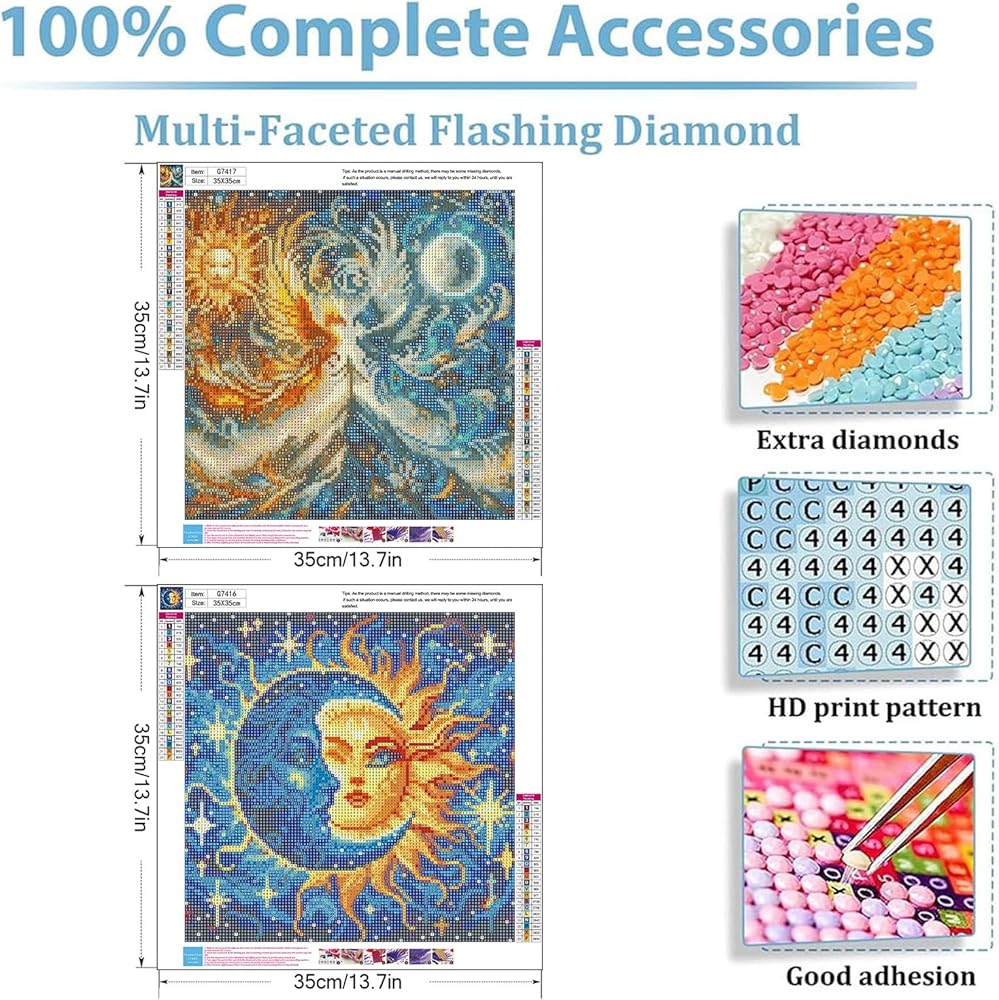 Sun and Moon Diamond Art Kits for Adults - 2 Pack Diamond Painting Kits for Adults,DIY 5D Diamond Painting with Round Gem Art Kits for Adults for Gift Home Wall Decor 14x14 Inch