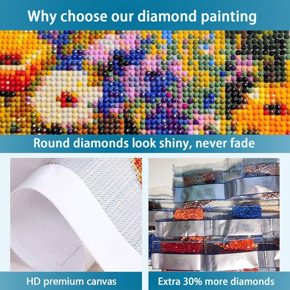 【High-quality craftsmanship】 each of our products have gone through a quality audit, the canvas is high-definition waterproof, the glue is strongly bonded, the diamonds have been faceted many times, sparkling, our diamond paintings can be preserved for twenty years, you don't need to worry about the quality of the product