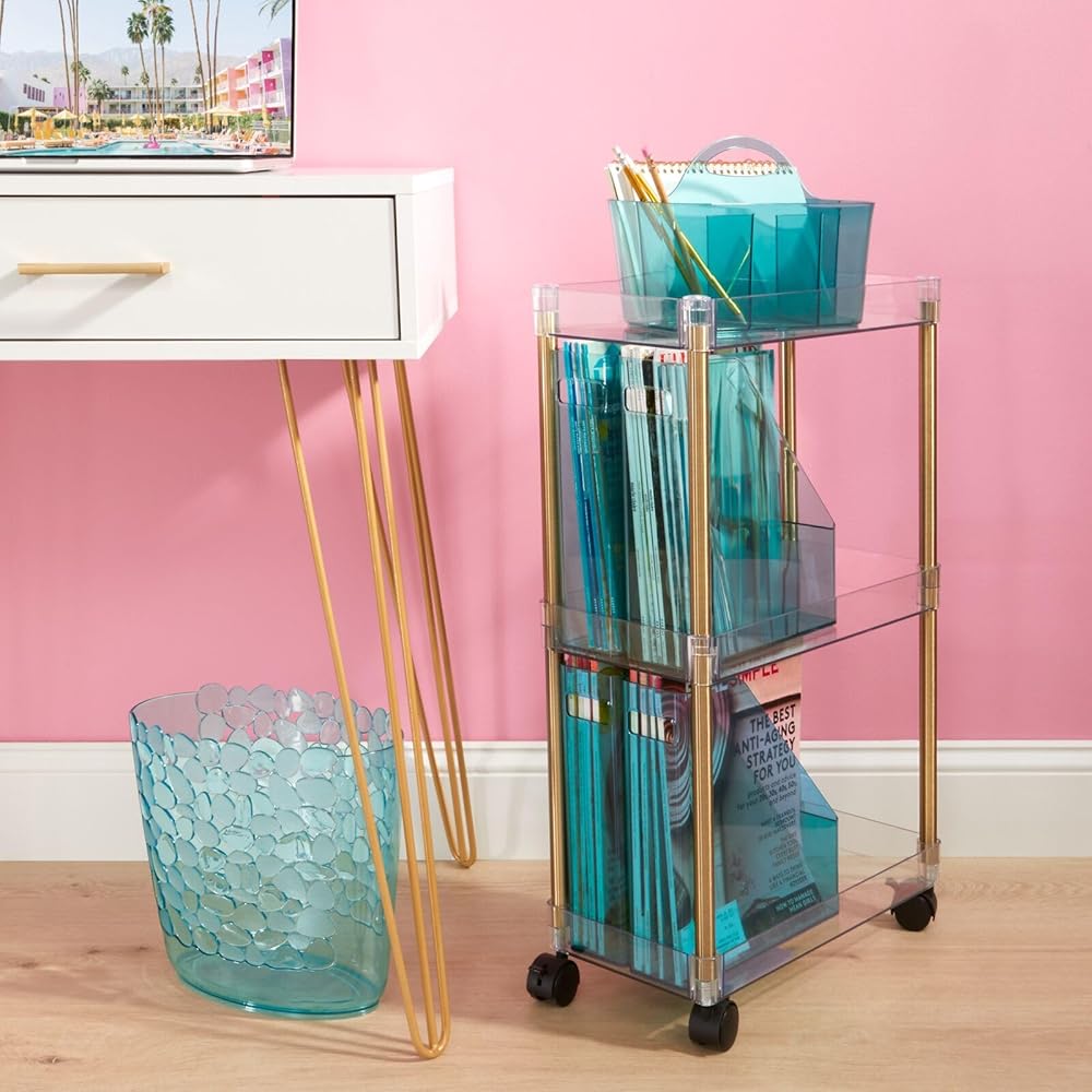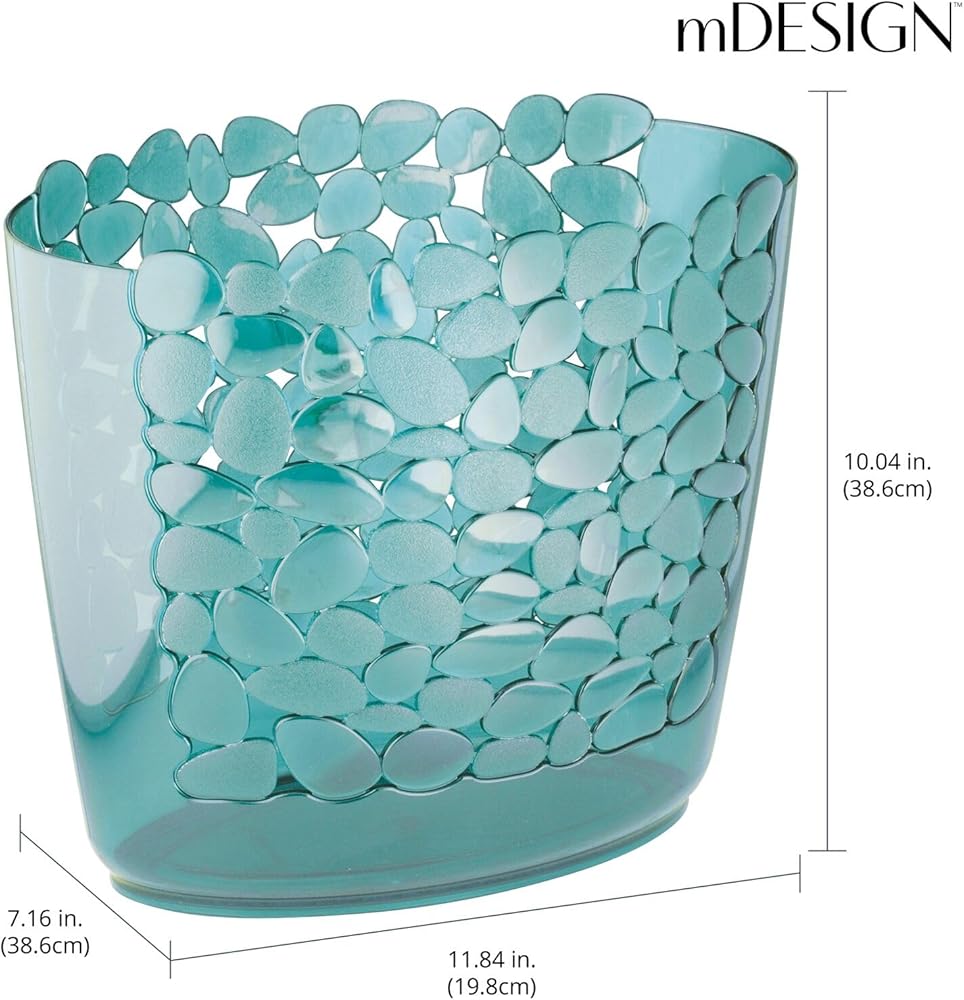 Mdesign البلاستيك النحيف النحيف 2 غالون سلة المهملات يمكن أن يرتدي سلة القمامة سلة ذات طابع زخرفي للحمام ، غرفة نوم ، مكتب - عقد القمامة ، النفايات ، إعادة التدوير - الحصى مجموعة - الأزرق