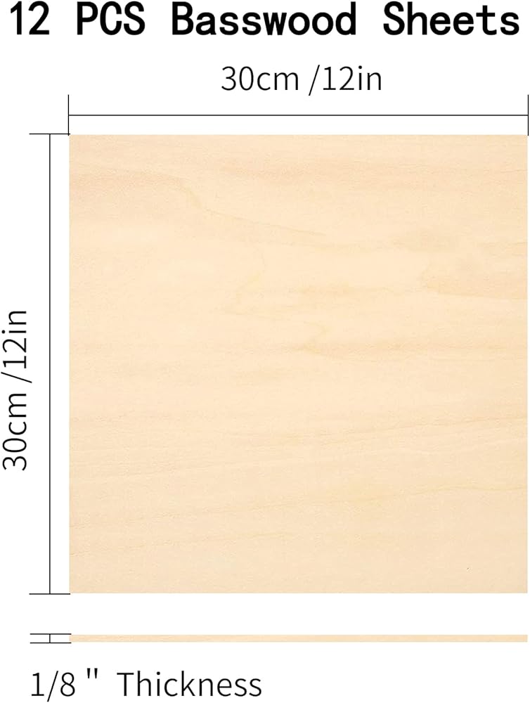 12Pack 11.8”x11.8”x1/8” balsawood Sheets for Crafts, Perfect for Architectural Models Drawing Painting Wood Engraving Wood Burning Laser Scroll Sawing