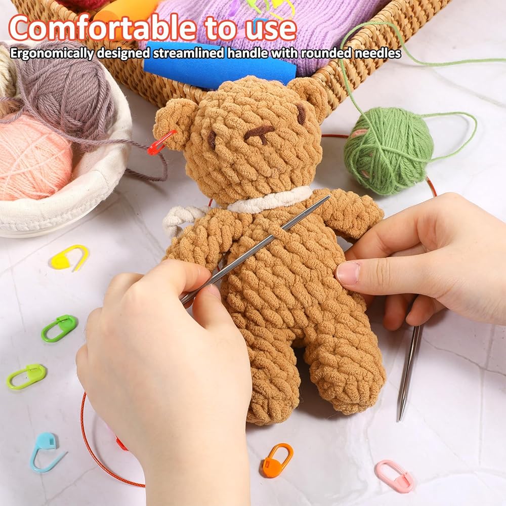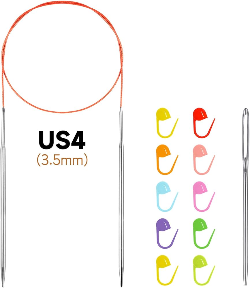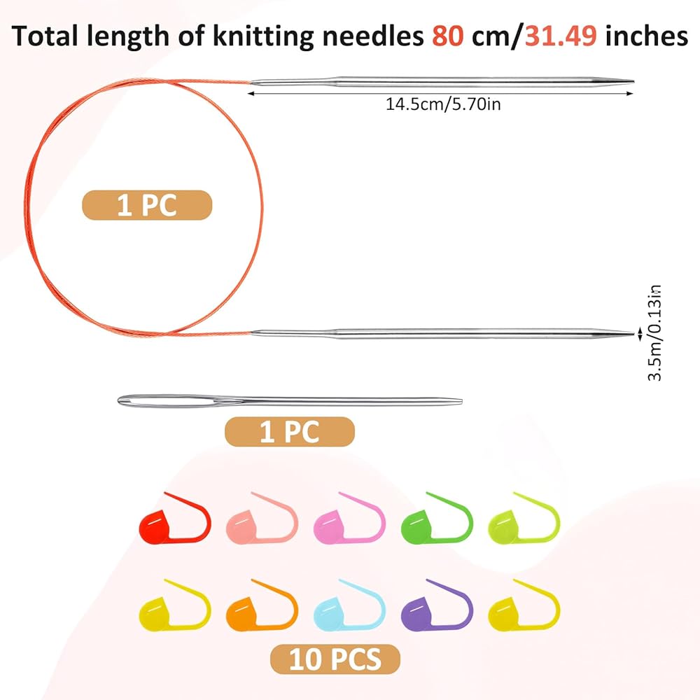 SIZE:This set includes 1 pcs of 32-inch knitting needles size 4 (needle diameter 3.5mm), 10 stitch markers, and 1 large-eye blunt needle