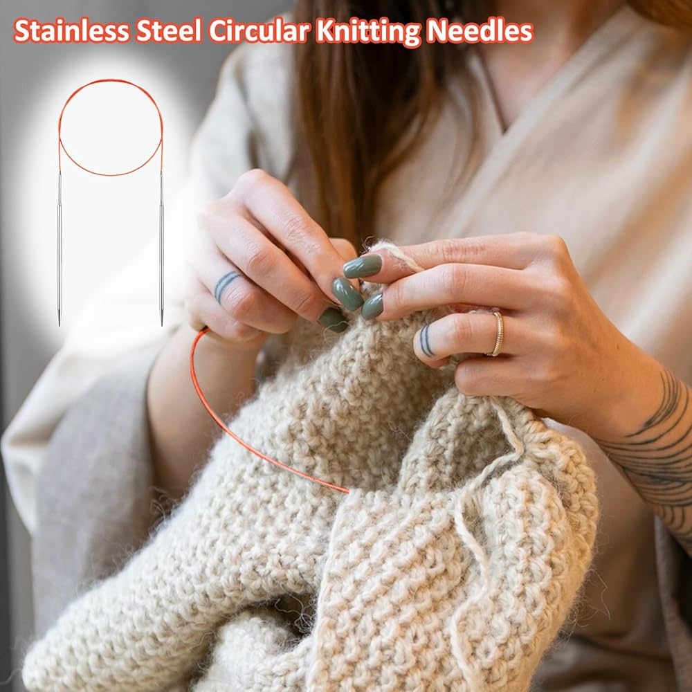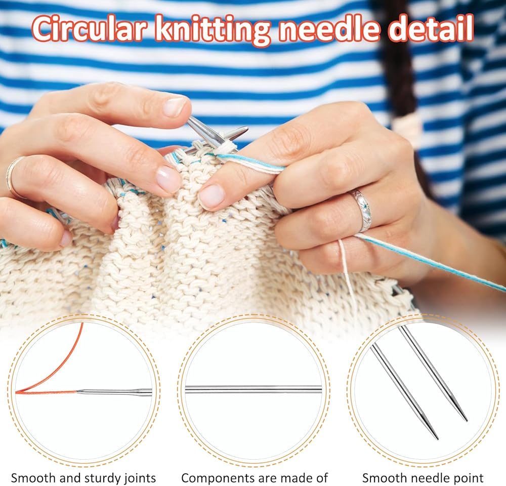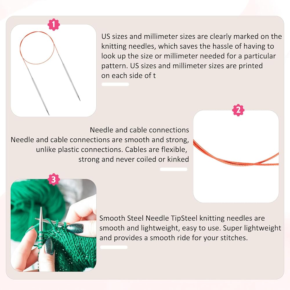 DURABLE AND STRONG:Unlike bamboo, these stainless steel needles are sturdy and long-lasting, providing consistent performance. The steel cables allow yarn to glide smoothly for large projects like blankets, sweaters, and hats