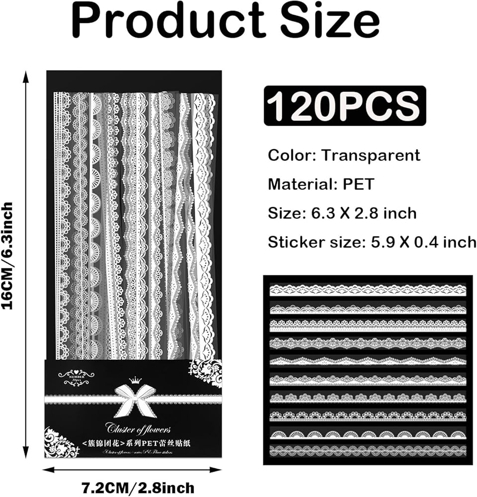 استخدامات متعددة: يمكن استخدام ملصقات الدانتيل الشفافة هذه لتزيين سجلات القصاصات والبطاقات المصنوعة يدويًا وألبومات الصور ودعوات الزفاف ودفاتر الملاحظات وما إلى ذلك، مما يجعلها تبدو أكثر رقة وجاذبية