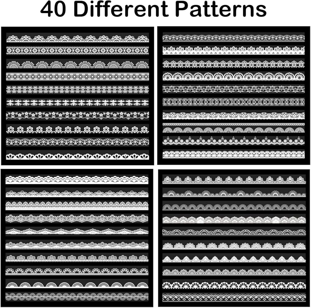 المقاس المناسب: نظرًا لتصميمات الملصقات المختلفة، يبلغ مقاس كل ملصق دانتيل لسجل القصاصات حوالي 5.9 × 0.4 انش. ليست كبيرة جدًا أو صغيرة جدًا، الحجم المناسب لك لتصنعها بنفسك. بالطبع، يمكنك قصه إلى المقاس حسب الحاجة