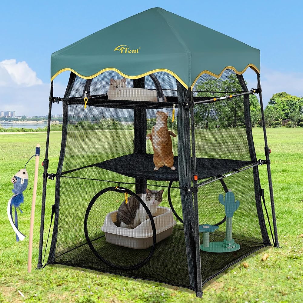 Looking for the perfect gift for your furry friend? Look no further than this cat tower tent! With breathable mesh,360-degree view for your pets to explore.Keep your cats or small animals close to nature and away from bugs and predators.Perfect for your cats.
