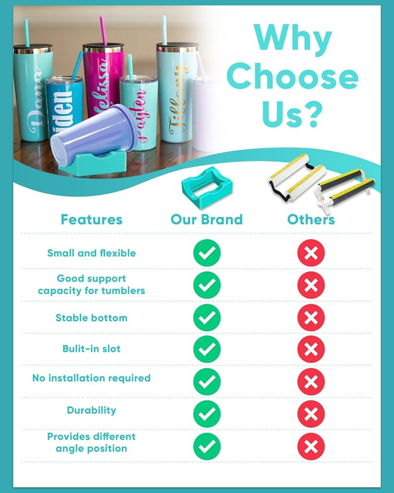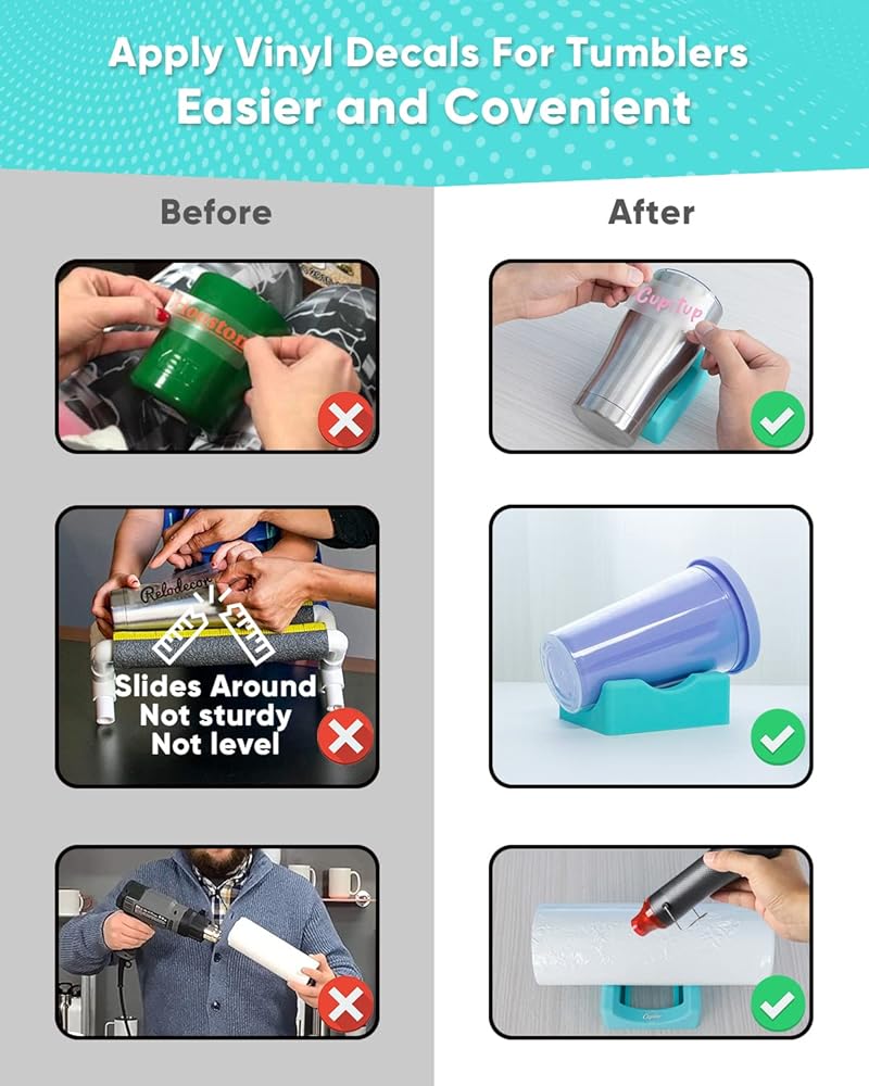 【لا مزيد من القاعدة المنزلقة】 يمكن لتصميم حامل الكوب المكون من قطعة واحدة أن يتحمل ما يصل إلى 100 باوند دون أن يتغير شكله، مما يحافظ على توازنك ومستويًا لوضع ملصق الفينيل المثالي في كل مرة.