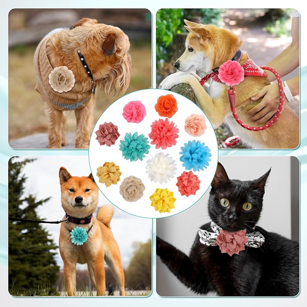 Versatile and Easy to Use: The sturdy elastic band design allows for easy attachment and removal of these flower charms on most pet collars. They are suitable for various pets, including dogs, cats, ducks, and even birds, making them perfect accessories for parties, weddings, and beauty contests.