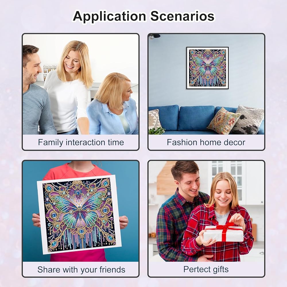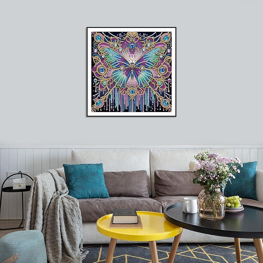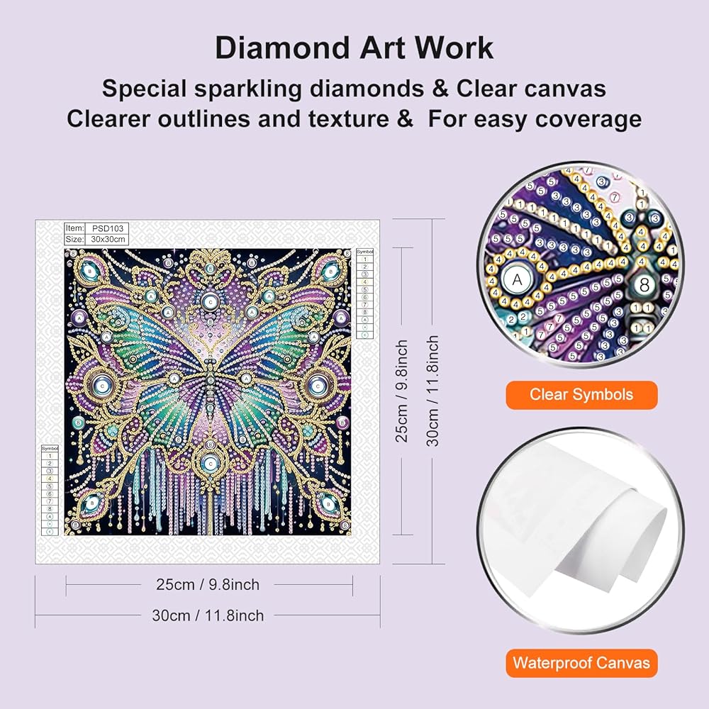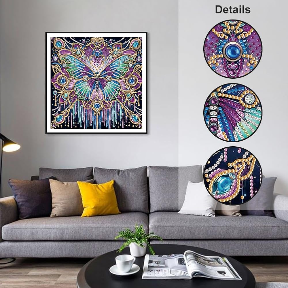 【SPECIAL SHAPE DRILL】Butterfly Diamond Painting Kits for Adults, Use the unique Crystal Rhinestone Diamond and the designed pattern to make a reasonable combination, This is a new type of special shape diamond, including circles, diamond-shaped columns and drop-shaped to realize the shining and vivid handmade crafts