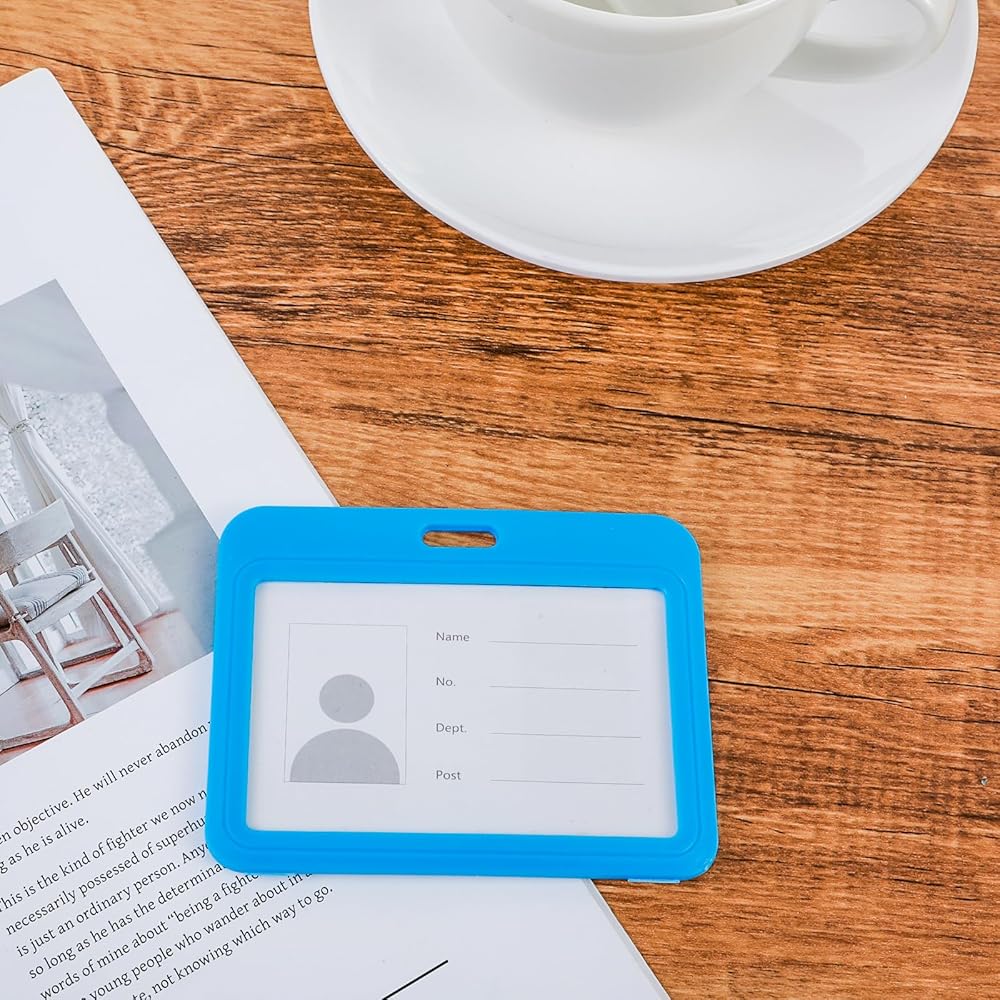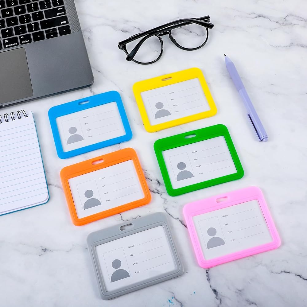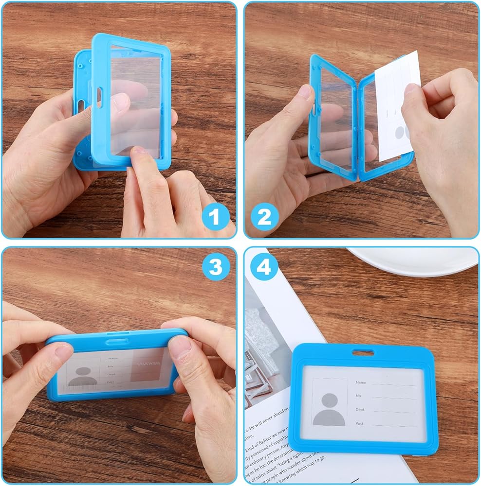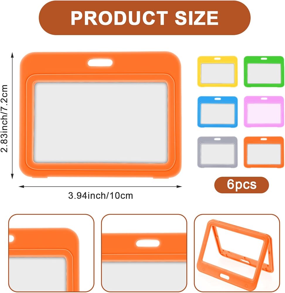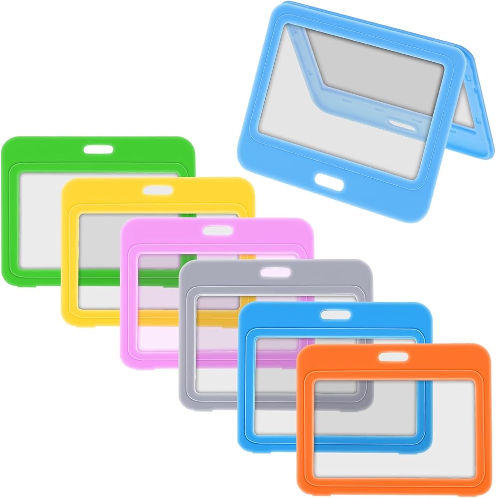 ID Badge Holders, 6 Pcs Double-Sided Plastic ID Card Case Protector Pouch Clear Window Horizontal Name Tags Holder ID Credit Cards Protector Cover for Office School