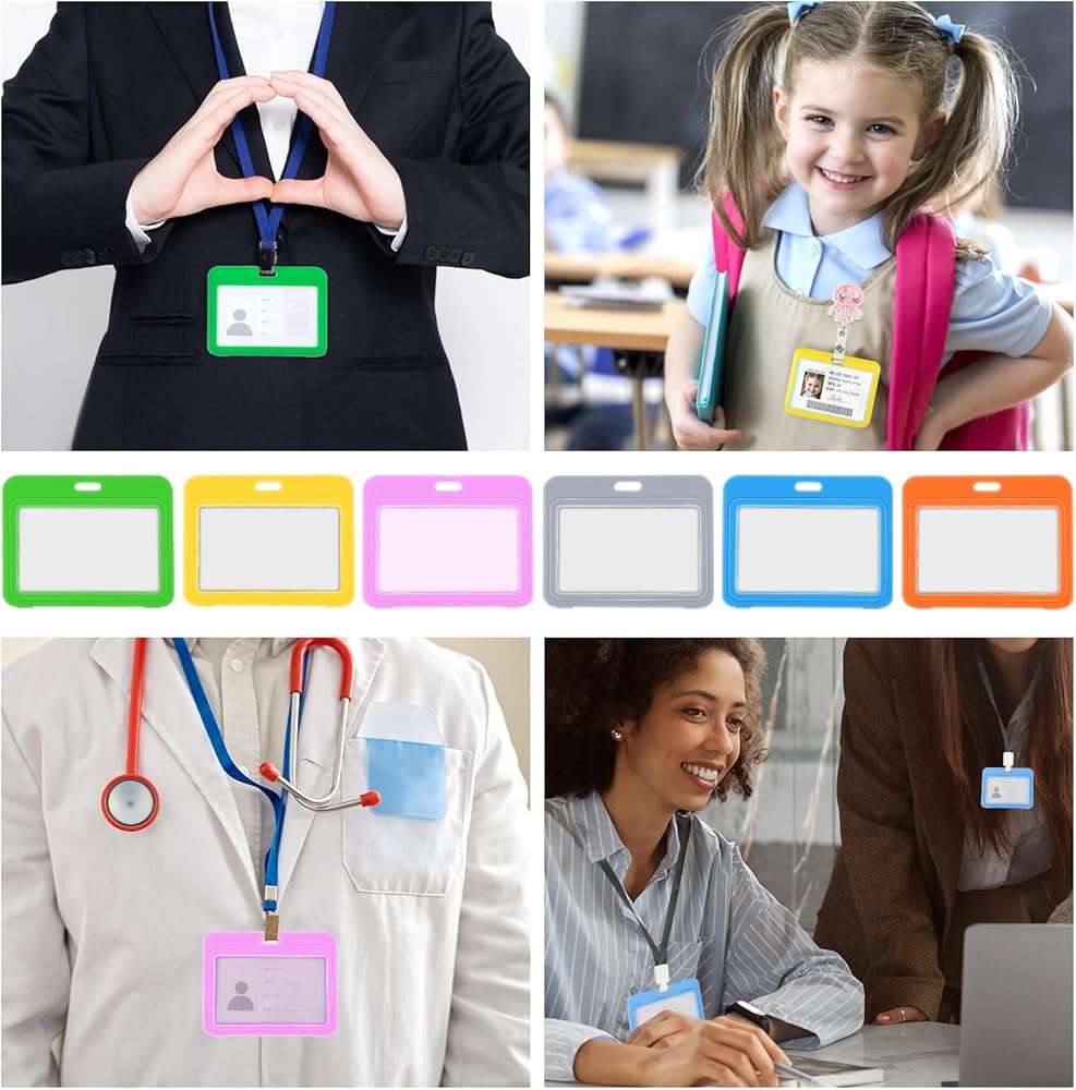 【You Will Get】lanyard ID badge holder consists of 6pcs single card holders on both sides. The quantity is sufficient and the styles are diverse, badge holder with lanyard is enough for your daily replacement or use. You can also share it with your family or friends.
