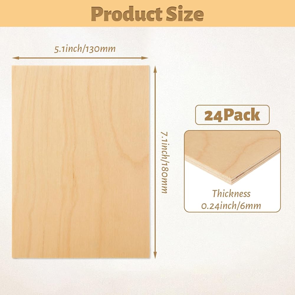 24PCS 5 x 7 Inch Basswood Sheets for Crafts, Unfinished Wood Boards, 1/4 Inch(6mm) Thin Plywood Wood Sheets for Laser Cutting, CNC Cutting and Painting