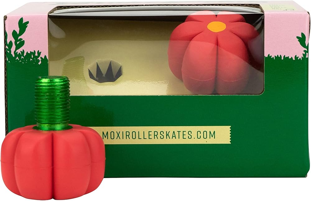 Moxi pulled out ALL the stops on this new product! After finding the longest-lasting material to burn down hills, Moxi decided to take the toe stop and make it cute. The stems are anodized green and shorter than standard length toe stops so they can be cranked all the way up for slamming on the brakes! These stops have no unintentional drag or slide and will stop on a dime if you're precise enough. Made from a durable, long-lasting rubber compound that won't mark up indoor rink floors, and is perfect for rough, outdoor surfaces like streets and sidewalks. Moxi Brake Petal toe stops should be installed/threaded at least a ½ (approximately 15mm) into the toe stop receptacle in you place and secured tightly. Rotate stops when worn and replace when necessary.