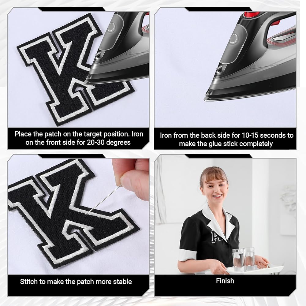 【Simple Application】Applying these letter patches iron on is a breeze. Place the iron on patch letters in the desired position, cover with a thin cotton cloth Iron from the front for 20-30 seconds, then from the back for 15-20 seconds. Allow to cool, or sew around the edges for extra security.