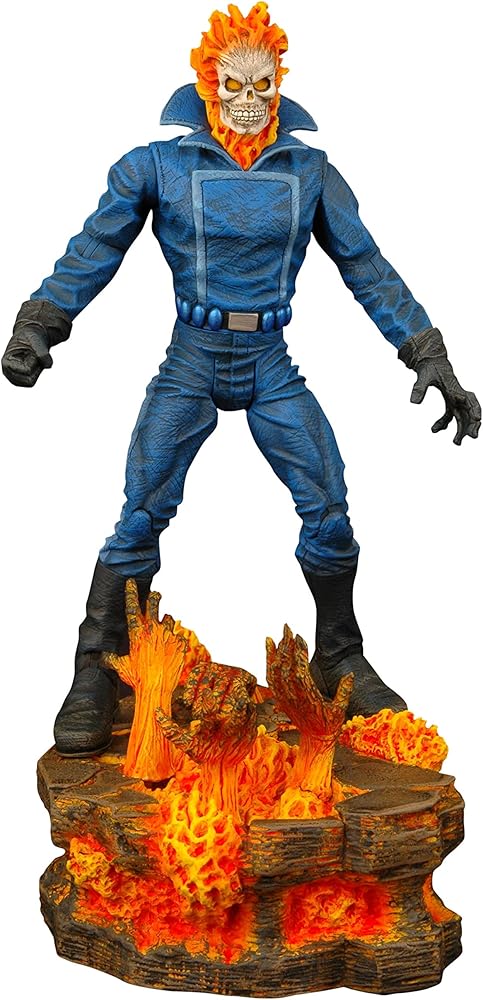 A Diamond Select Release! Sculpted by Steve Kiwus! It's a blast (of Hellfire) from the past! Originally released in 2007, this detailed 7-inch figure of Johnny Blaze, the original Ghost Rider, is going back into production for the first time since its original release! Finally, fans who missed out will have a chance to own this classic item! Figure comes with detailed underworld base in display-ready Select packaging, with shelf reference panel.